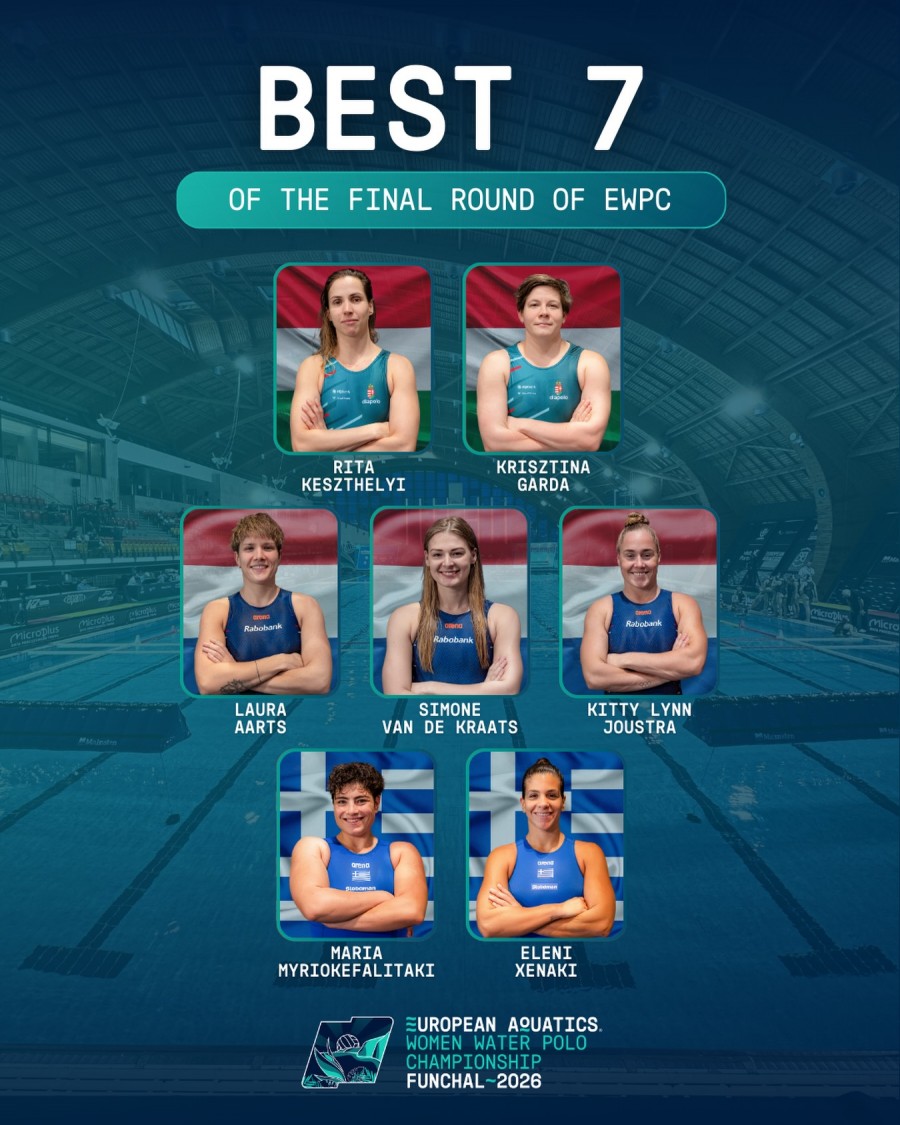 Δυο Ελληνίδες παίκτριες συμπεριλαμβάνονται στην κορυφαία επτάδα του ευρωπαϊκού πρωταθλήματος. Πρόκειται για την Έλενα Ξενάκη που ήταν η πολυτιμότερη παίκτρια στον «μικρό» τελικό και την Μαρία Μυρικοκεφαλιτάκη που επιλέχθηκαν στην ελίτ του πρωταθλήματος.