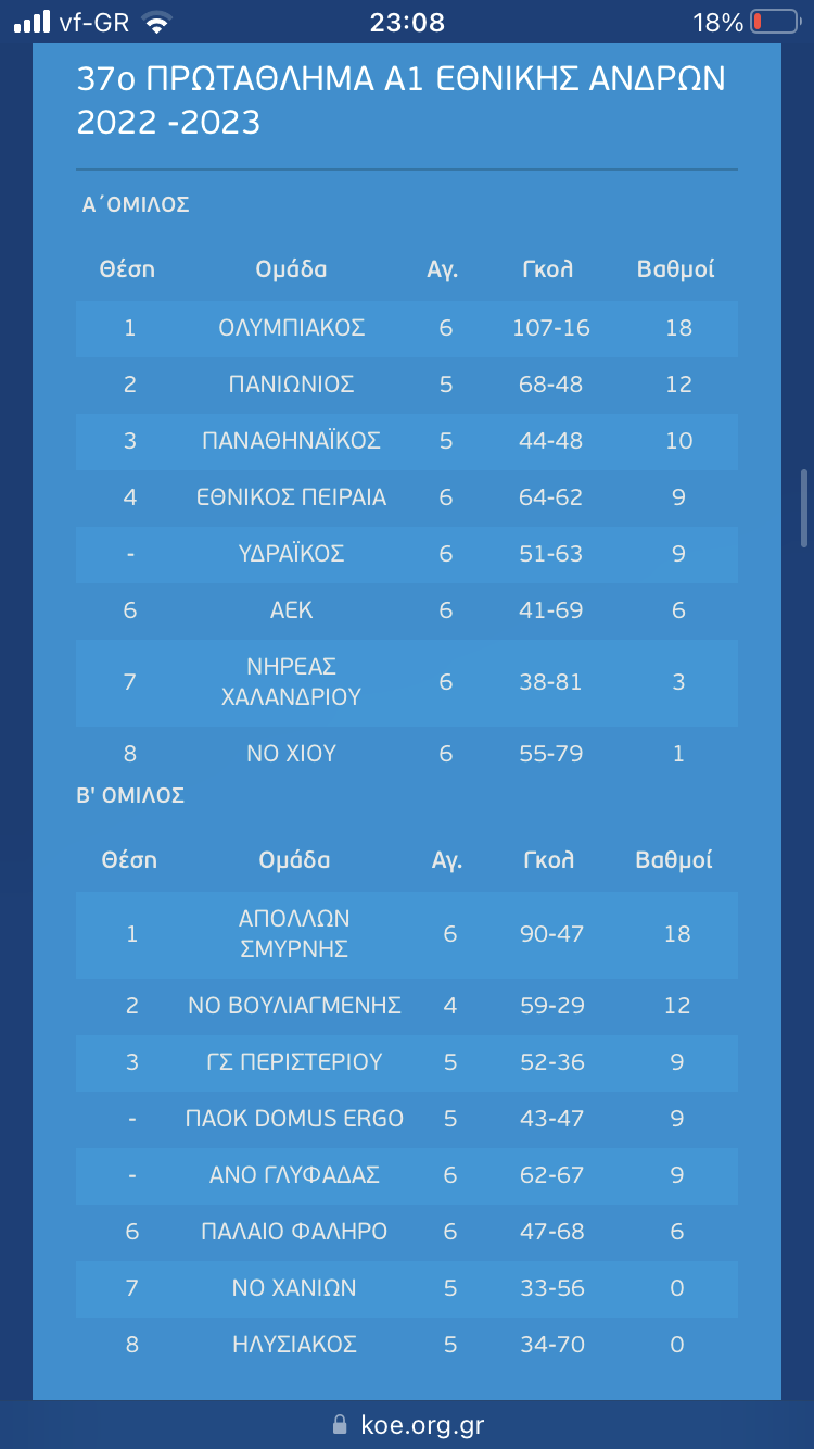 Συνεχίζουν αήττητοι ΟΣΦΠ και Απόλλωνας