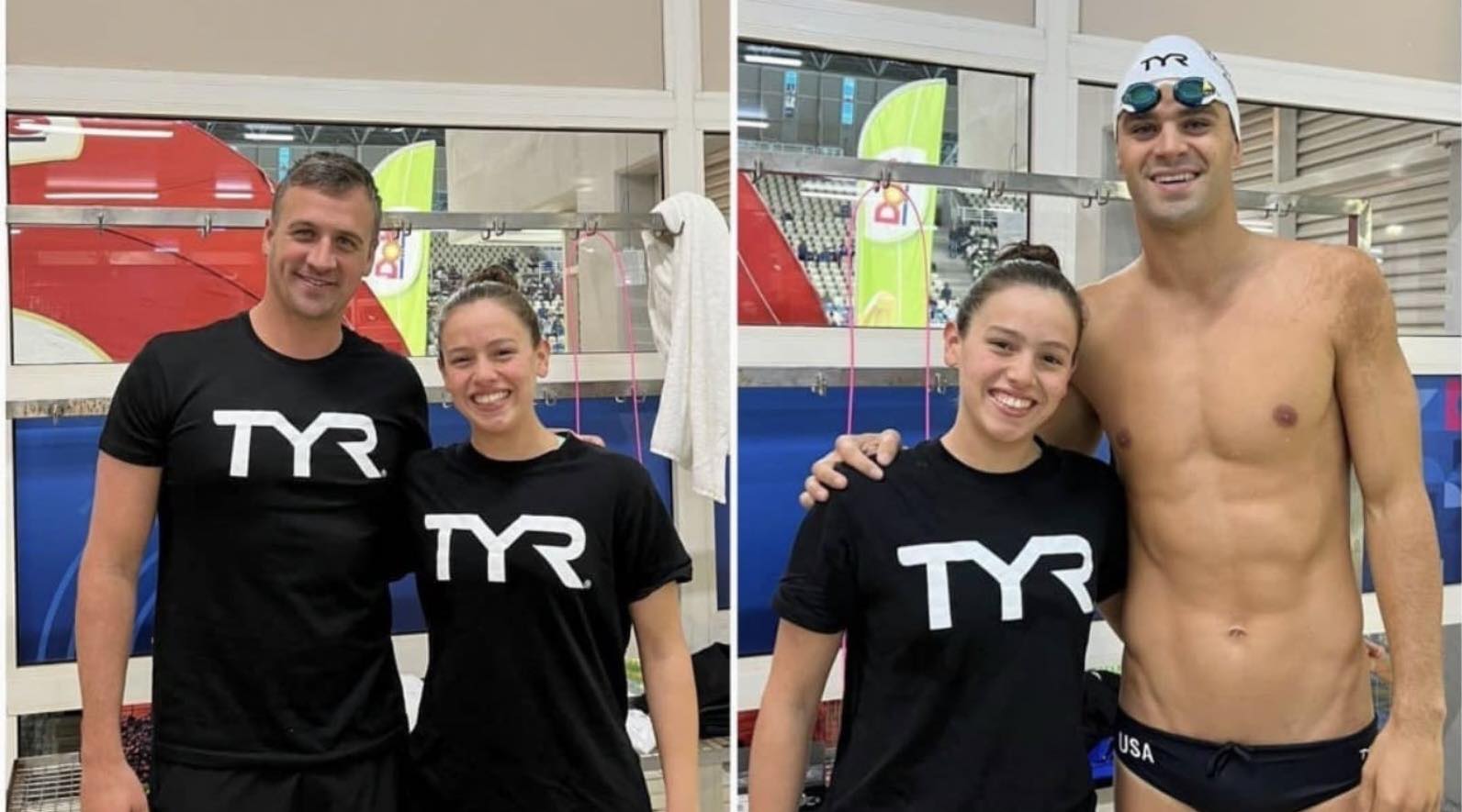 Στις φωτογραφίες η νεαρή αθλήτρια ποζάρει με τον Ράϊαν Λόχτε και τον Μάϊκλ Άντριου. Είναι οι Αμερικανοί πρωταθλητές που είχαν έρθει τον χειμώνα στην Αθήνα και είχαν κάνει καμπ φιλοξενούμενοι της εταιρίας TYR.