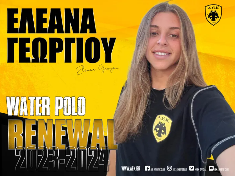 Η ΑΕΚ βρίσκεται στην ευχάριστη θέση να ανακοινώσει την ανανέωση της συνεργασίας της με την Ελεάνα Γεωργίου. Η 20χρονη περιεφερειακός υπέγραψε το νέο της συμβόλαιο και θα παραμείνει στο δυναμικό της γυναικείας ομάδας Πόλο του Συλλόγου.
