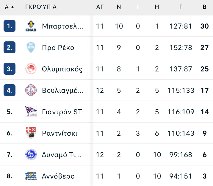 Αναλυτικά η βαθμολογία του Α’ Ομίλου: