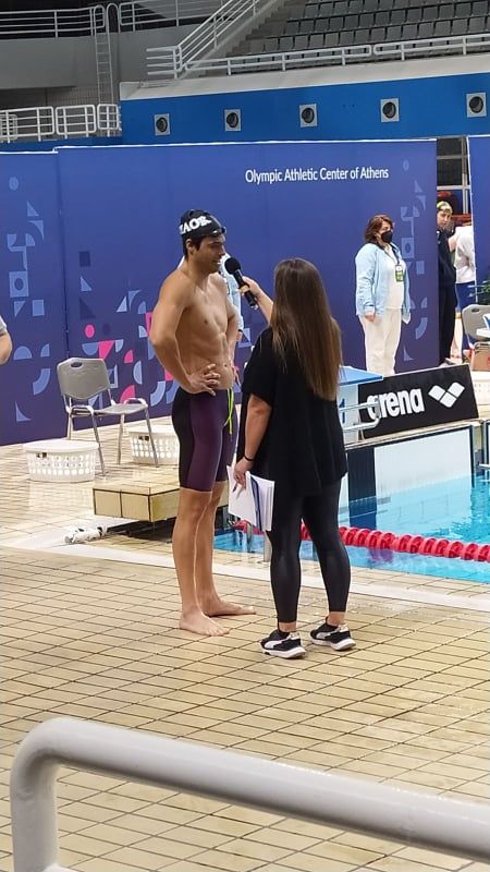 Μετά τα 50μ. ύπτιο, ο αθλητής του Ολυμπιακού έπιασε το όριο συμμετοχής στο Ευρωπαϊκό Πρωτάθλημα της Ρώμης και στα 100μ. ύπτιο στο απογευματινό πρόγραμμα της δεύτερης ημέρας, με επίδοση 54.34.