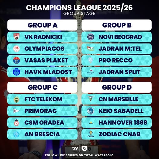 Β΄ ΟΜΙΛΟΣ: Νόβι Μπέογκραντ (Σερβία), Γιάντραν Χέρτσεγκ, Νόβι (Μαυροβούνιο), Προ Ρέκο (Ιταλία), Γιάντραν Σπλιτ (Κροατία).