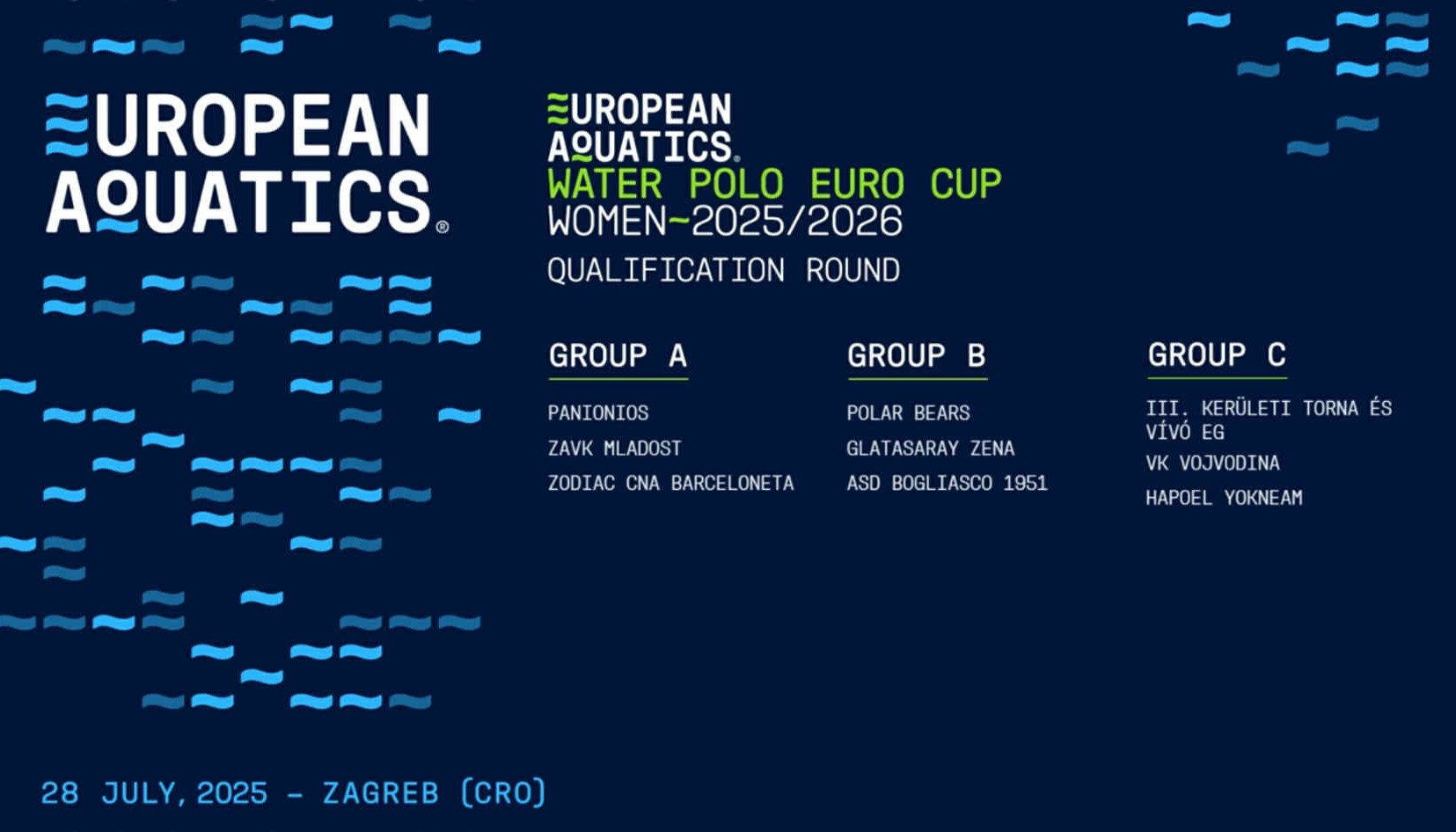 Πραγματοποιήθηκε σήμερα, Δευτέρα 28 Ιουλίου 2025, η κλήρωση της φάσης των ομίλων του Euro Cup υδατοσφαίρισης γυναικών, με τον Εθνικό Πειραιά να συμμετέχει απευθείας σε αυτή τη φάση της διοργάνωσης.