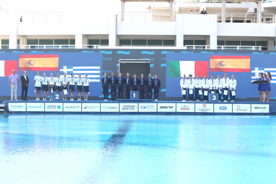 Τις απονομές των μεταλλίων έκαναν ο Πρόεδρος της ΚΟΕ και Αντιπρόεδρος της European Aquatics Κυριάκος Γιαννόπουλος και ο Γενικός Γραμματέας της European Aquatics Νόαμ Σβι.