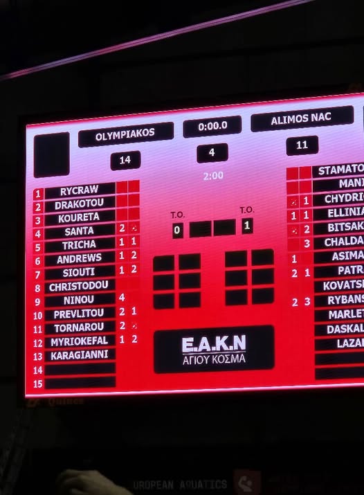 Την πρόκριση στα προημιτελικά του Champions League υδατοσφαίρισης γυναικών εξασφάλισε ο Ολυμπιακός, νικώντας ξανά τον Άλιμο στον Πειραιά, αυτή τη φορά με σκορ 14-11, για την 4η αγωνιστική του Γ΄ ομίλου.