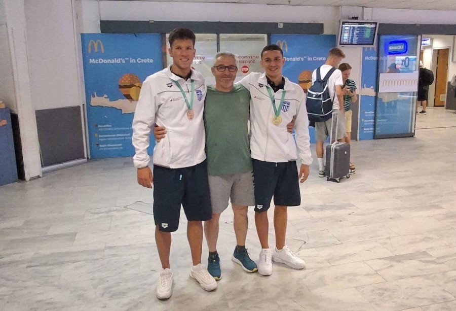 Οι τρεις μεγάλοι πρωταγωνιστές όπως και τα υπόλοιπα παιδιά από την Κρήτη…έτρεξαν να προλάβουν την πτήση από Αθήνα για Ηράκλειο. Εκεί τους περίμενε η Γ’ Αντιπρόεδρος της Κολυμβητικής Ομοσπονδίας Ελλάδας, Αλεξία Μαρίνη που τους υποδέχθηκε και τους μετέφερε τις ολόθερμες ευχές του προέδρου της ΚΟΕ, Κυριάκου Γιαννόπουλου και όλων των μελών του δ.σ.