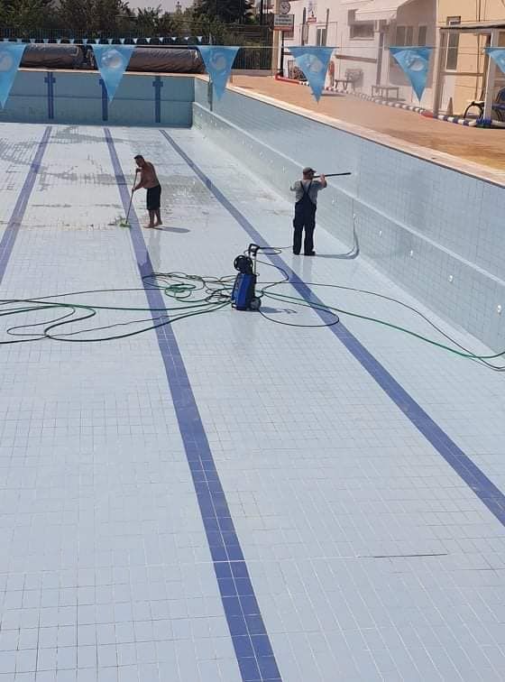 Οι εργασίες προβλέπουν αντικατάσταση του νερού και των δύο κολυμβητικών δεξαμενών, πλύσιμο με πλυστικό, σκούπες,