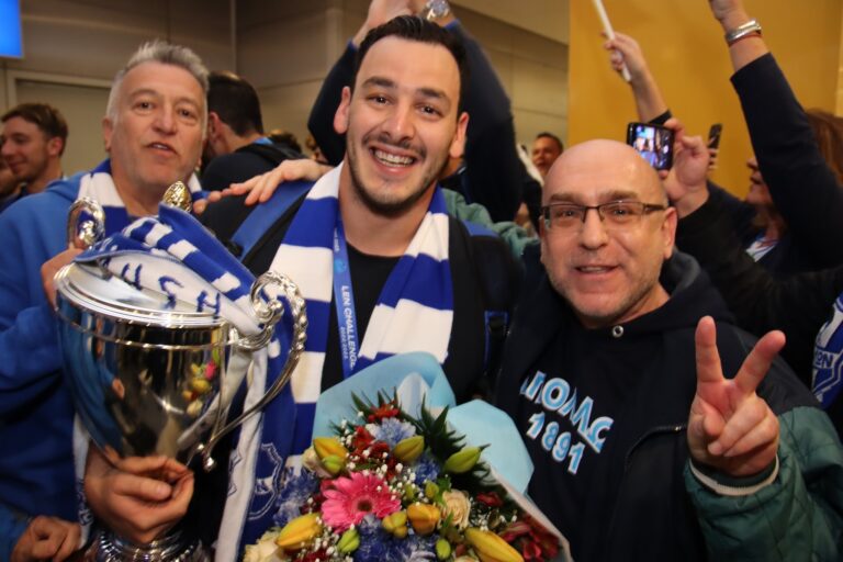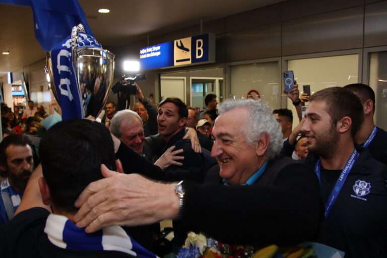 Ο πρόεδρος του ΓΣ Απόλλων Σμύρνης Παναγιώτης Καταβέλος και τα υπόλοιπα μέλη του ΔΣ έδωσαν ανθοδέσμες στους Κυπελλούχους Ευρώπης συνοδεύοντας τες με φιλιά και αγκαλιές γι’ αυτήν την τεράστια επιτυχία, που αποτελεί δικαίωση των προηγούμενων γενιών Απολλωνιστων και παρακαταθήκη για το μέλλον.