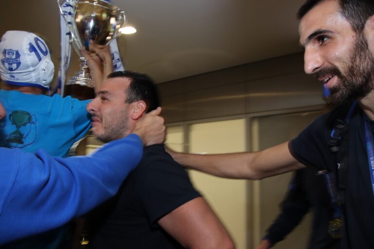 «Είναι πολύ συγκινητική η υποδοχή. Να βλέπεις και μεγάλους ανθρώπους με δάκρυα στα μάτια οι οποίοι στα τελευταία 60-70 χρόνια δεν είχαν πανηγυρίσει κάποιο τίτλο. Σου δίνουν να καταλάβεις ότι έχεις πετύχει κάτι σπουδαίο. Τα παιδιά πρέπει να καταλάβουν γρήγορα ότι έχουν πετύχει κάτι σπουδαίο και θα πρέπει να επιδιώξουν κάτι σπουδαιότερο. Πολύ σημαντικό για όλους, πολύ σημαντικό για την οικογένεια του Απόλλωνα, για όλον τον οργανισμό, συγχαρητήρια στους ανθρώπους που το ονειρεύτηκαν, συγχαρητήρια στους ανθρώπους που το υλοποίησαν, στον κ. Βελλή στον Γιώργο Αφρουδάκη και νομίζω ότι θα πρέπει να περιμένουμε και μεγαλύτερα πράγματα»!