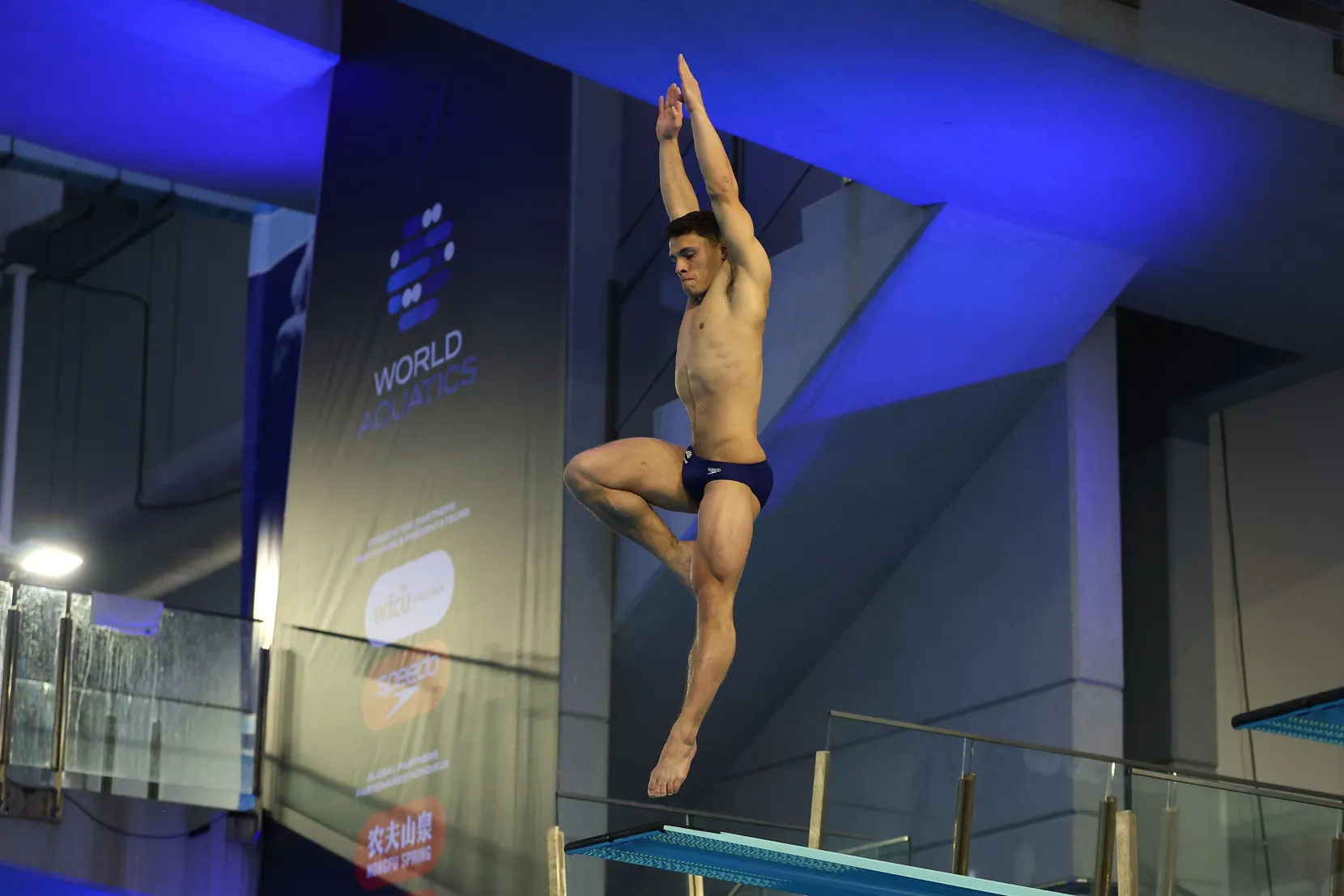 Τη δεύτερη ημέρα του Παγκόσμιου Κυπέλλου Καταδύσεων στο Windsor, η Κίνα κέρδισε τρία χρυσά μετάλλια – αλλά στο τελευταίο αγώνισμα της ημέρας, ο Jordan Houlden από τη Μεγάλη Βρετανία ανατρέπει το φαβορί και κερδίζει απρόσμενα το χρυσό στο ατομικό τραμπολίνο 3μ ανδρών.