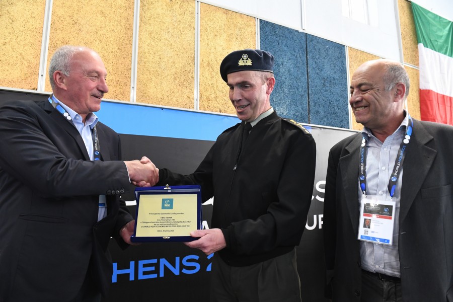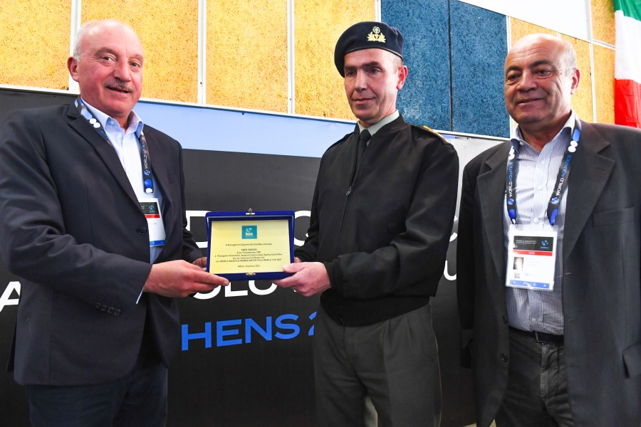 Η Κολυμβητική Ομοσπονδία Ελλάδας διά του προέδρου της Κυριάκου Γιαννόπουλου και του Γενικού Γραμματέα, Στέφανου Αυγουλέα, απένειμε τιμητική πλακέτα στον Υποστράτηγο (ΠΒ) κ.Πολύχρονο Αναστάσιο, Διοικητή της Στρατιωτικής Σχολής Ευελπίδων, για τη πολύτιμη συνδρομή του στη διοργάνωση των αγώνων της Β’ Φάσης του World Cup. Ο κ.Γιαννόπουλος ευχαρίστησε τους επιτελείς της Στρατιωτικής Σχολής Ευελπίδων για την βοήθειά τους στην άψογη διοργάνωση.