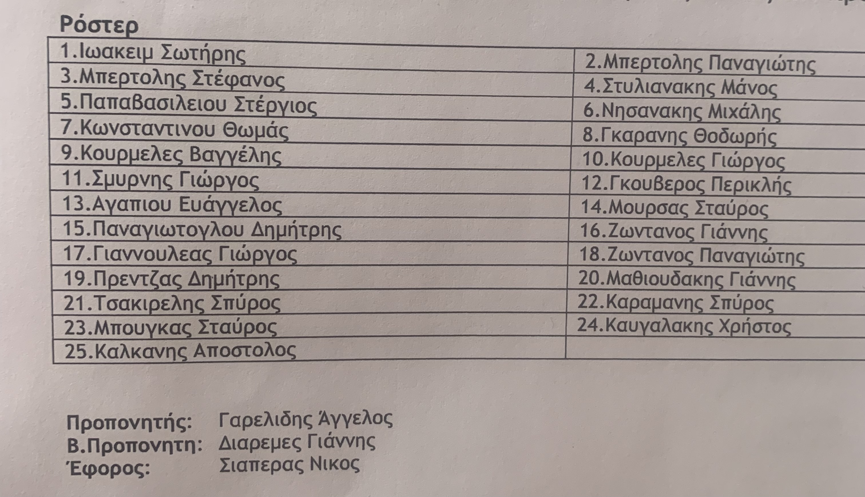 ΣΚ ΡΟΗ (Γαρελίδης): Παν. Μπερτόλης 6, Στ. Μπερτόλης 4, Κωνσταντίνου 3, Στυλιανάκης 2, Τσακιρέλης 2, Αγαπίου 1, Γιαννουλέας 1, Παπαβασιλείου 1, Γκαράνης 1,