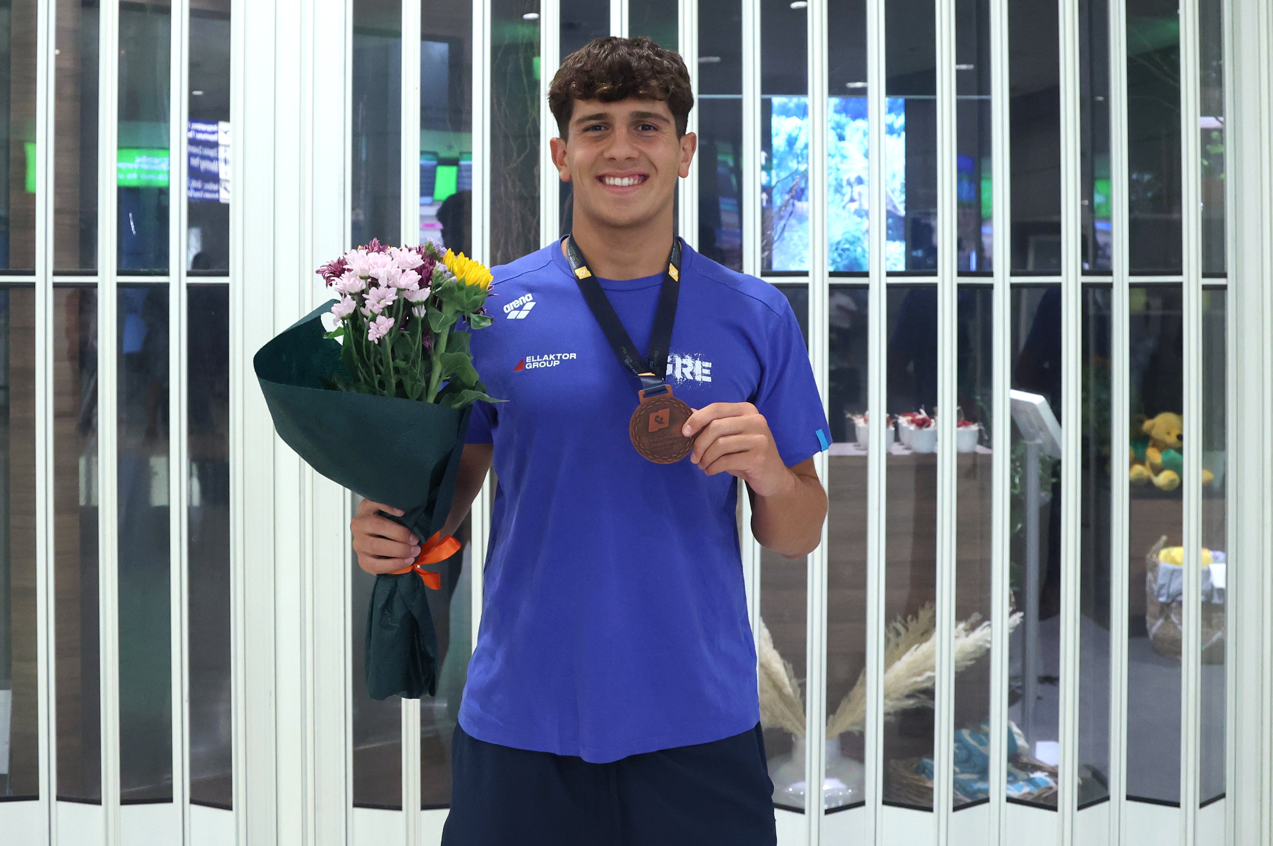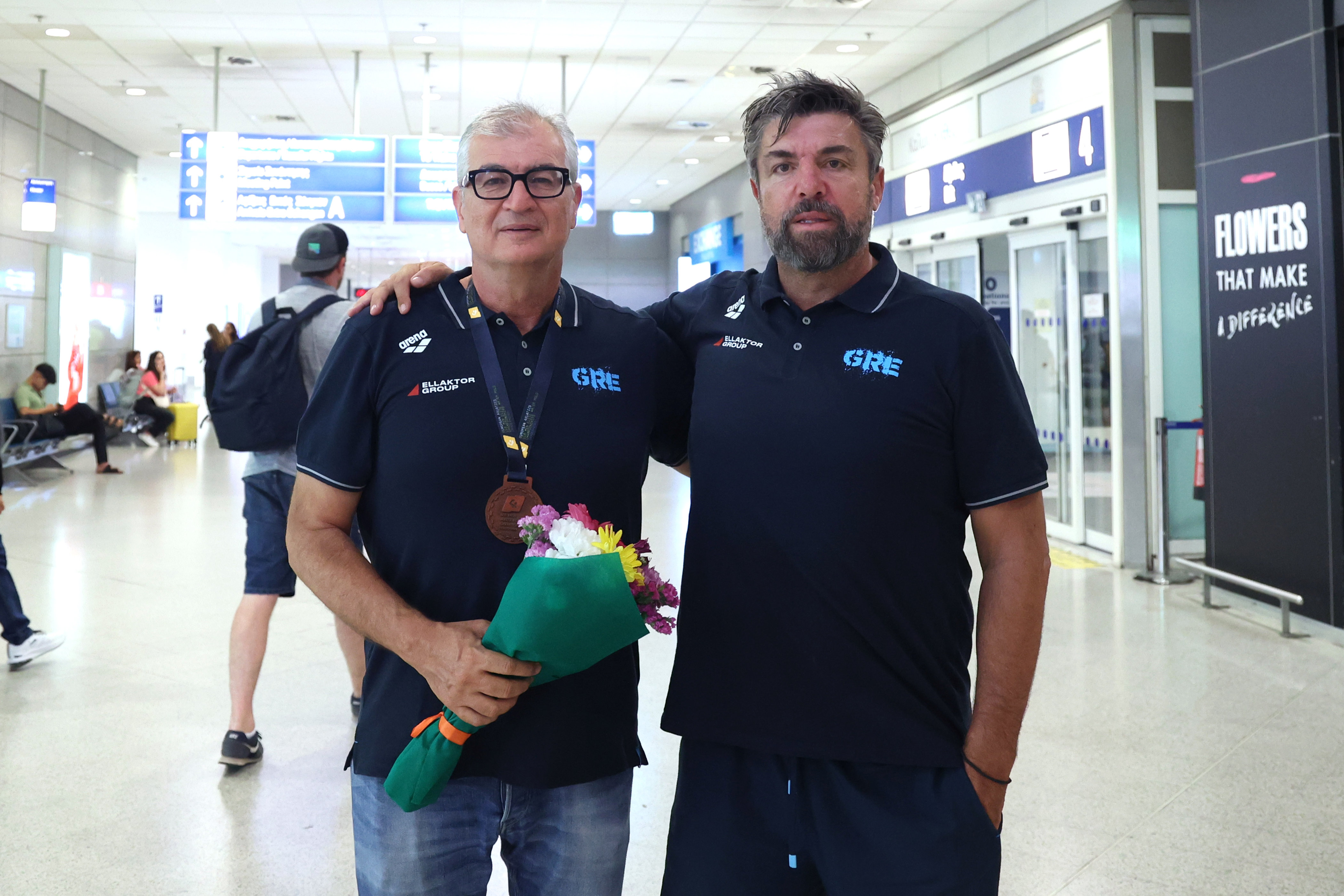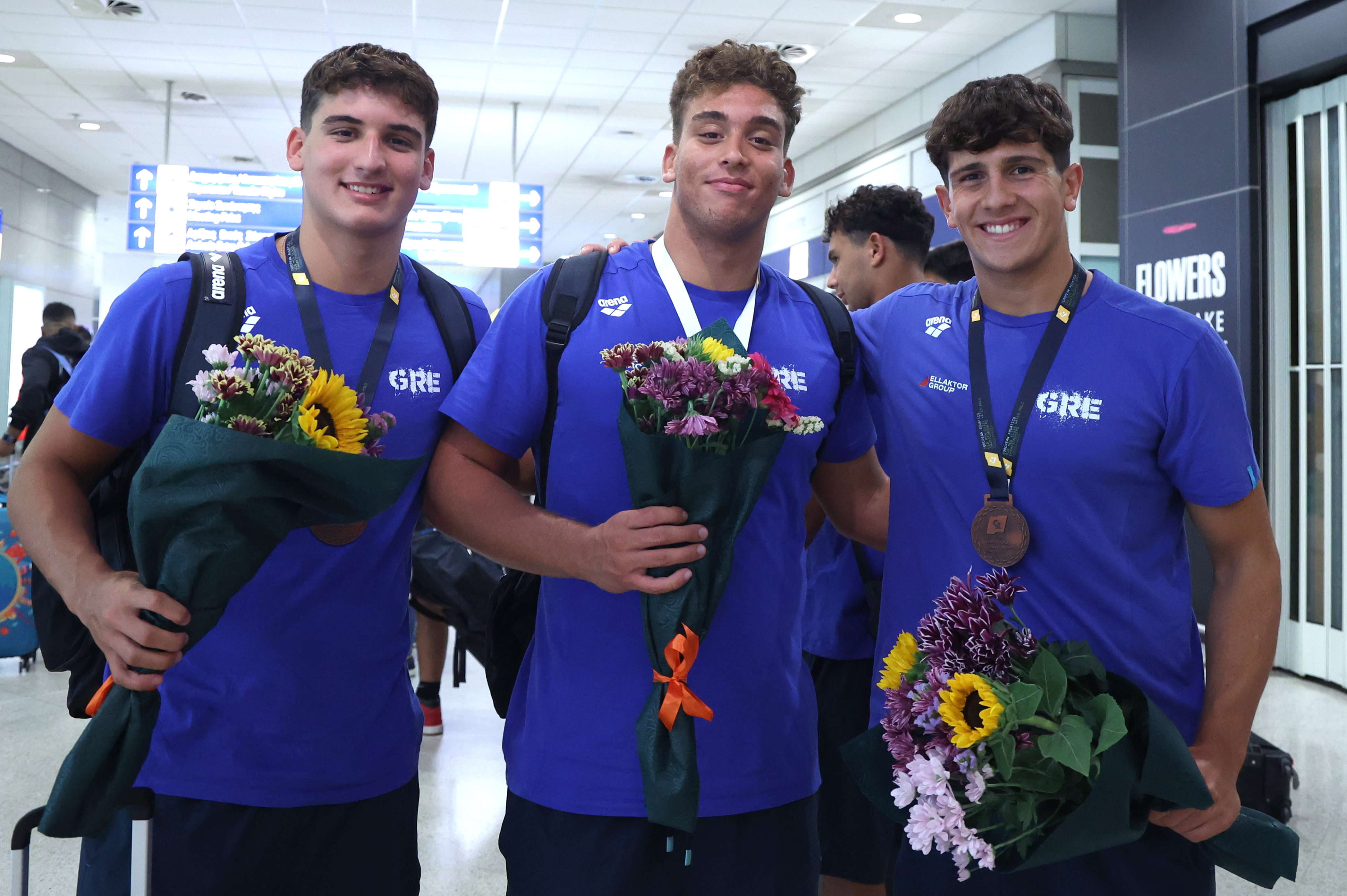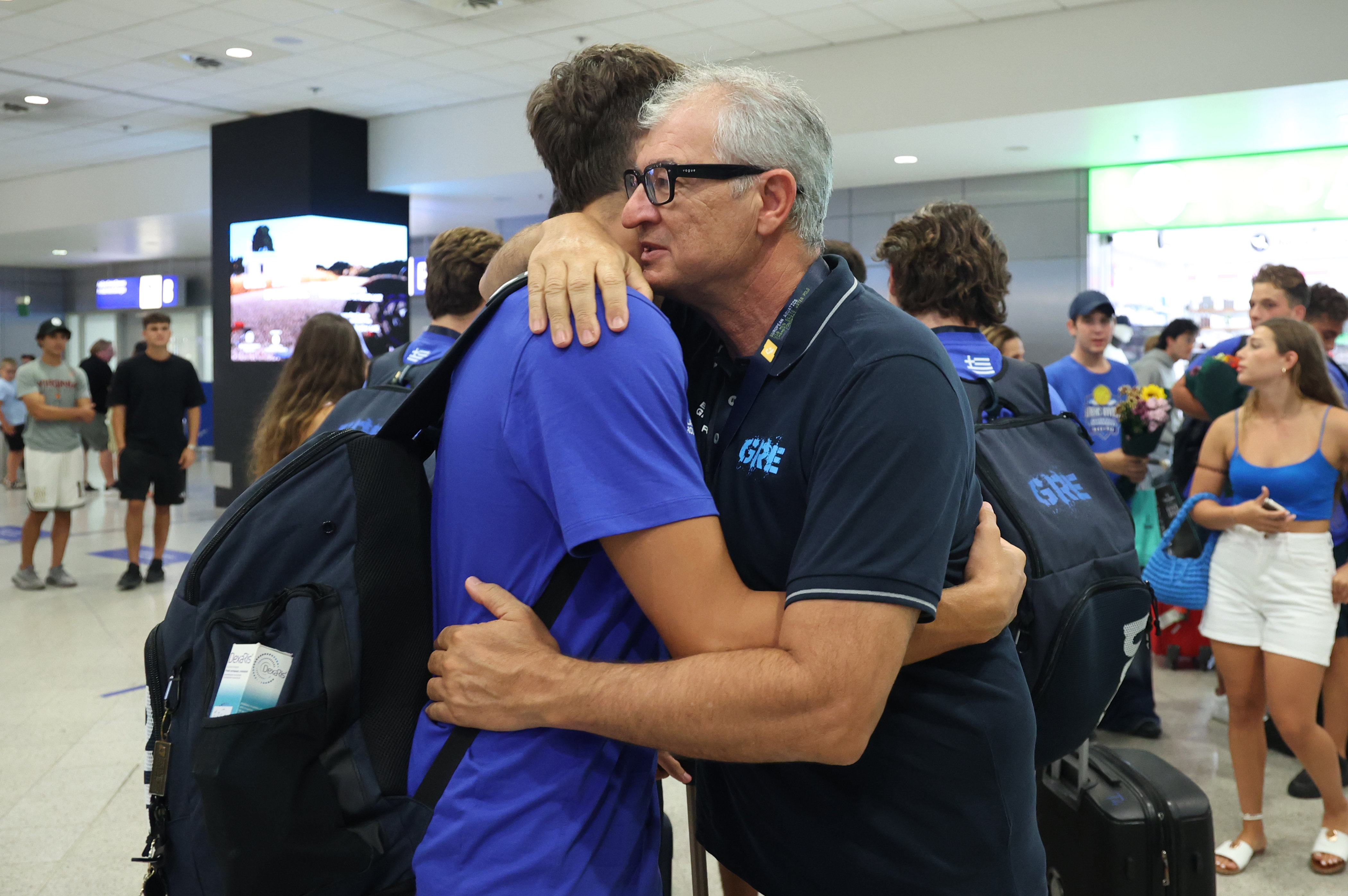 Στο αεροδρόμιο «Ελευθέριος Βενιζέλος» υποδέχθηκε την αποστολή εκ μέρους της Κολυμβητικής Ομοσπονδίας, ο Α΄Αντιπρόεδρος, Γιώργος Αφρουδάκης, ενώ παρόντες ήταν συγγενείς και φίλοι που χειροκρότησαν τους πρωταγωνιστές και τους πρόσφεραν ανθοδέσμες και μια μεγάλη, ζεστή αγκαλιά.