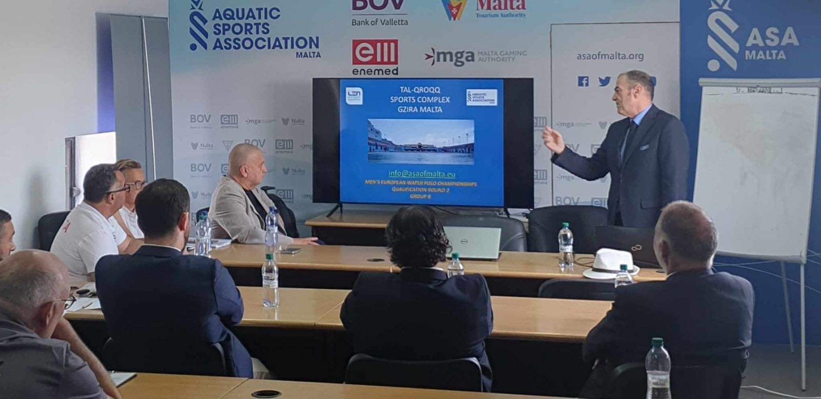 Στον Β Προκριματικό όμιλο που διεξήχθει στη Μάλτα με τις ομάδες της Γερμανίας, Ουκρανίας, Βουλγαρίας και της οικοδέσποινας Μάλτας βρέθηκε ως Delegate ο Νίκος Σταυρόπουλος μέλος της Τεχνικής Επιτροπής Υδατοσφαίρισης (TWPC) της LEN.