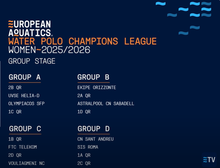 Με έντονο ελληνικό χρώμα πραγματοποιήθηκε σήμερα, Δευτέρα 28 Ιουλίου 2025, η κλήρωση για το Champions League Υδατοσφαίρισης Γυναικών από την European Aquatics. Στην τελική φάση των ομίλων έχουν ήδη προκριθεί ο Ολυμπιακός και η Βουλιαγμένη, ενώ Αλίμος και Γλυφάδα ρίχνονται στη «μάχη» της προκριματικής φάσης.