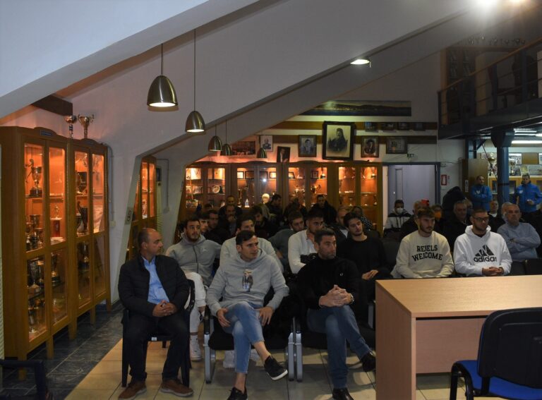 Ο τελευταίος, πριν την έναρξη της εκδήλωσης μάζεψε τους παίκτες στο χορτάρι της Ριζούπολης μιλώντας τους για τις προκλήσεις που υπάρχουν μπροστά τόσο για τους ίδιους όσο και για το Σύλλογο σε Ευρώπη, αλλά και Ελλάδα.