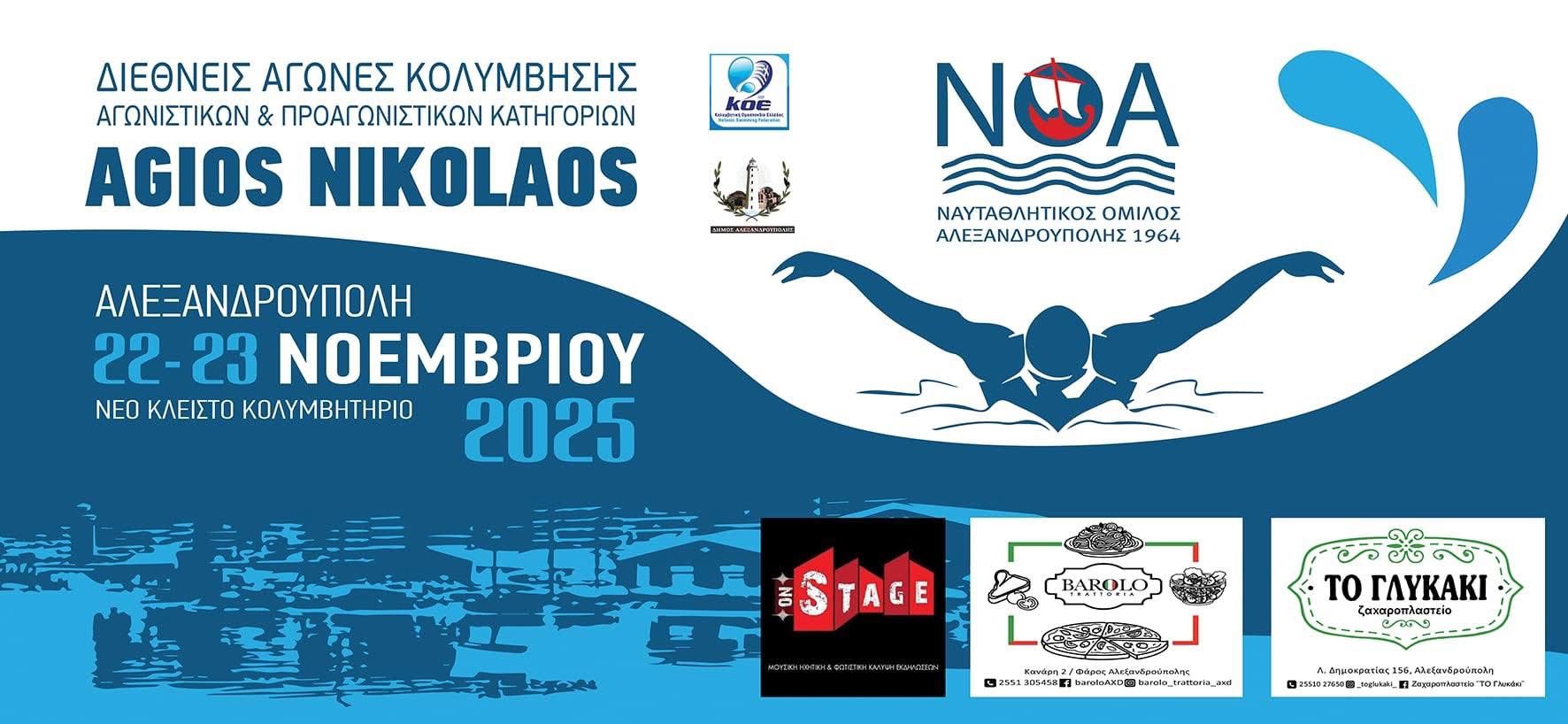 Με δυνατές εμφανίσεις και σημαντικές διακρίσεις συμμετείχε ο Κολυμβητικός Όμιλος Νέας Ορεστιάδας «Νηρέας» στη διοργάνωση «Άγιος Νικόλαος 2025», που πραγματοποιήθηκε στις 22–23 Νοεμβρίου στο Δημοτικό Κολυμβητήριο Αλεξανδρούπολης. Στους αγώνες έδωσαν το «παρών» περισσότεροι από 500 αθλητές από συλλόγους όλης της χώρας, επιβεβαιώνοντας το υψηλό επίπεδο και τον έντονο ανταγωνισμό της φετινής διοργάνωσης.