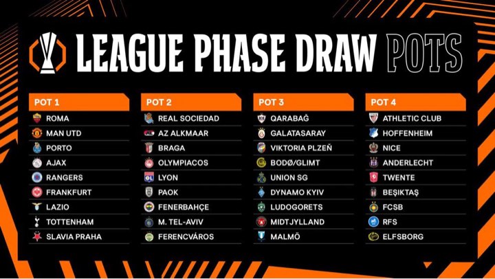 Στην κλήρωση του Europa League ΟΛΥΜΠΙΑΚΟΣ και ΠΑΟΚ θα βρεθούν στο 2ο γκρουπ δυναμικότητας από τα τέσσερα συνολικά, όπου κάθε γκρουπ απαρτίζεται από εννιά ομάδες. Η κάθε ομάδα θα παίζει οκτώ ματς στη League Phase. Δύο παιχνίδια δηλαδή με ομάδες από το πρώτο, δύο με ομάδες από το δεύτερο, δύο με ομάδες από το τρίτο και δύο με ομάδες από το τέταρτο γκρουπ, με τέσσερα ματς εντός έδρας και ισάριθμα εκτός όπου καθορίζονται από τον αλγόριθμο του υπολογιστή. Όταν οι οκτώ αγωνιστικές ολοκληρωθούν, τότε οι οκτώ πρώτοι της βαθμολογίας θα προκριθούν απευθείας στη φάση των «16».