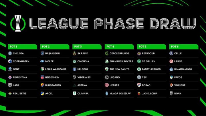 Στην κλήρωση του Conference League ο ΠΑΝΑΘΗΝΑΪΚΟΣ θα βρεθεί στο 5ο γκρουπ δυναμικότητας από τα έξι συνολικά, όπου κάθε γκρουπ απαρτίζεται από έξι ομάδες. Η κάθε ομάδα θα παίζει έξι ματς στη League Phase. Ένα παιχνίδι δηλαδή με ομάδα από το πρώτο, ένα με ομάδα από το δεύτερο, ένα με ομάδα από το τρίτο, ένα με ομάδα από το τέταρτο, ένα με ομάδα από το πέμπτο και ένα με ομάδα από το έκτο γκρουπ, με τρία ματς εντός έδρας και ισάριθμα εκτός όπου καθορίζονται από τον αλγόριθμο του υπολογιστή. Με τις ομάδες από το Α' και Β' γκρουπ θα δώσει ένα εντός και ένα εκτός έδρας, το ίδιο με τις ομάδες από το Γ' και το Δ', όπως και από το Ε' και το ΣΤ΄. Όταν οι έξι αγωνιστικές ολοκληρωθούν, τότε οι οκτώ πρώτοι της βαθμολογίας θα προκριθούν απευθείας στη φάση των «16». Τα υπόλοιπα οκτώ εισιτήρια θα προκύψουν μέσα από γύρο play offs διπλών αγώνων που θα δώσουν οι ομάδες, οι οποίες θα τερματίσουν στις θέσεις 9-24. Όσες τερματίσουν πάντως μεταξύ 9-16 θα έχουν ένα μικρό πλεονέκτημα απέναντι στις θέσεις 17-24, καθώς η ρεβάνς των play-off θα παίζεται στην έδρα τους.