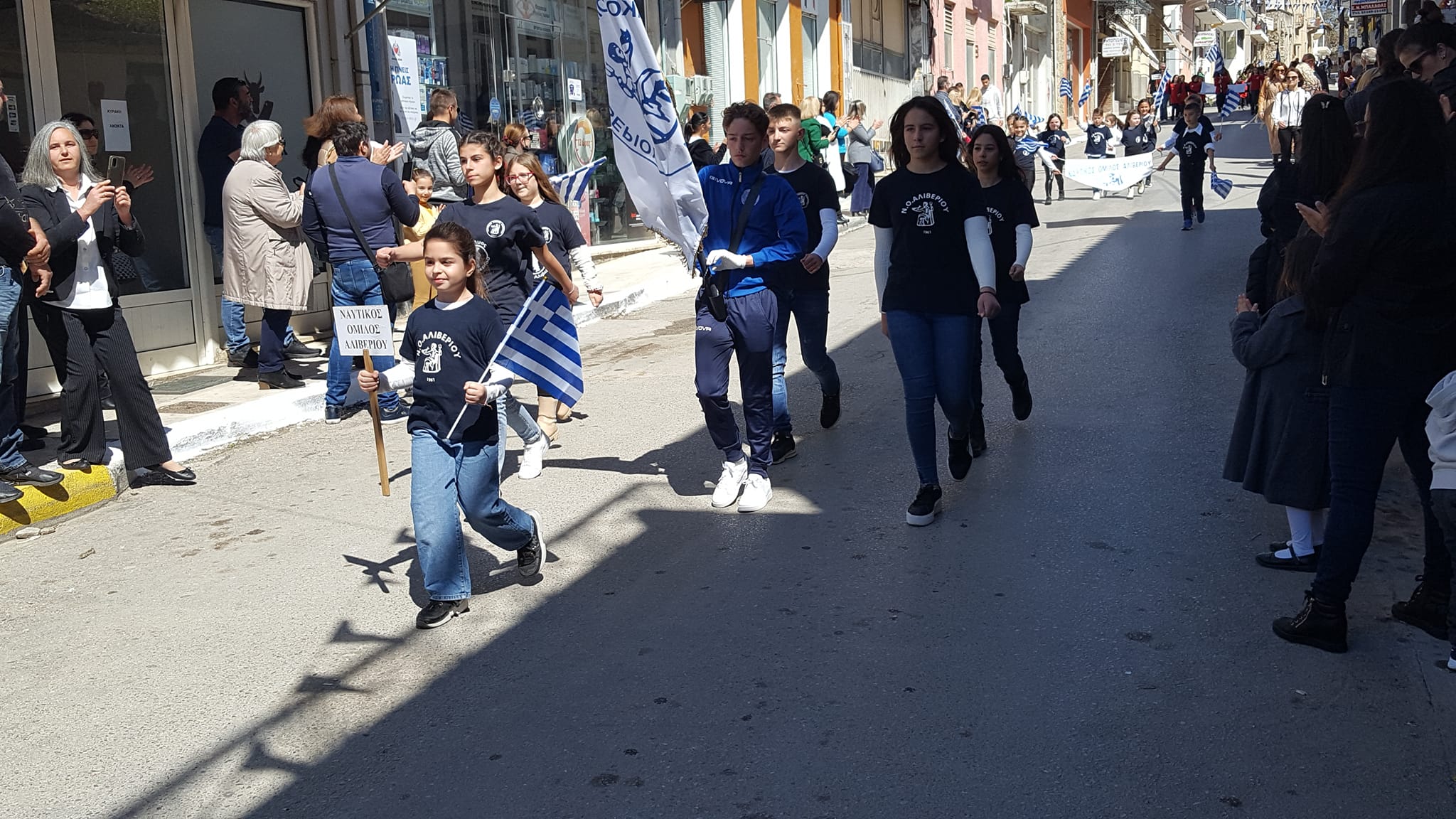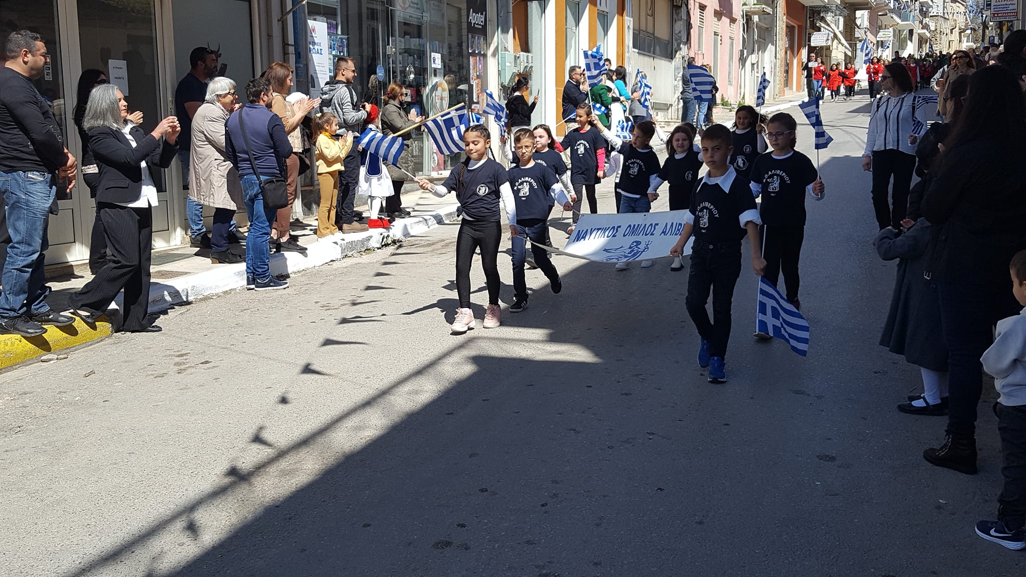 Πολύς ο κόσμος που χειροκρότησε θερμά τα παιδιά που παρέλασαν, μια ημέρα ηλιόλουστη και λαμπρή για την πόλη του Αλιβερίου.