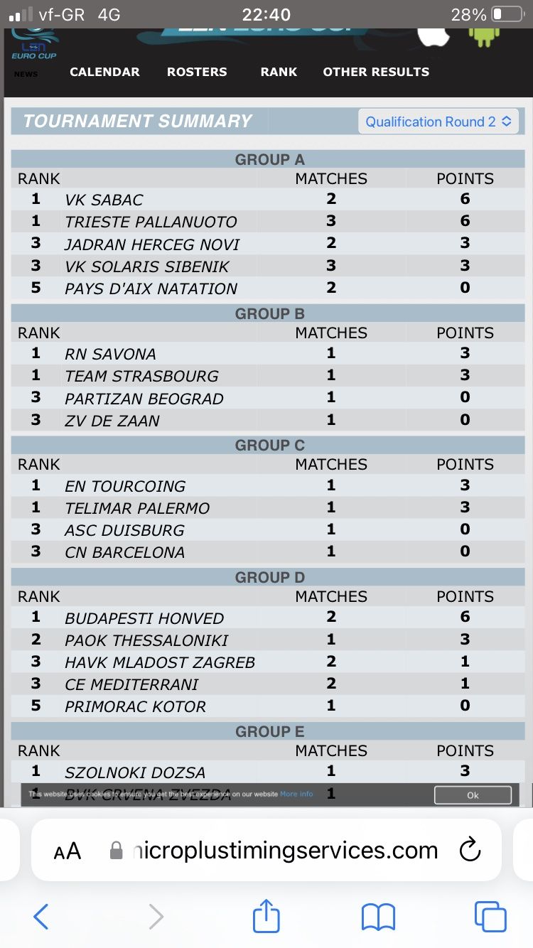 Παρακάτω οι βαθμολογίες των ομίλων μέχρι στιγμής και το αυριανό πρόγραμμα.