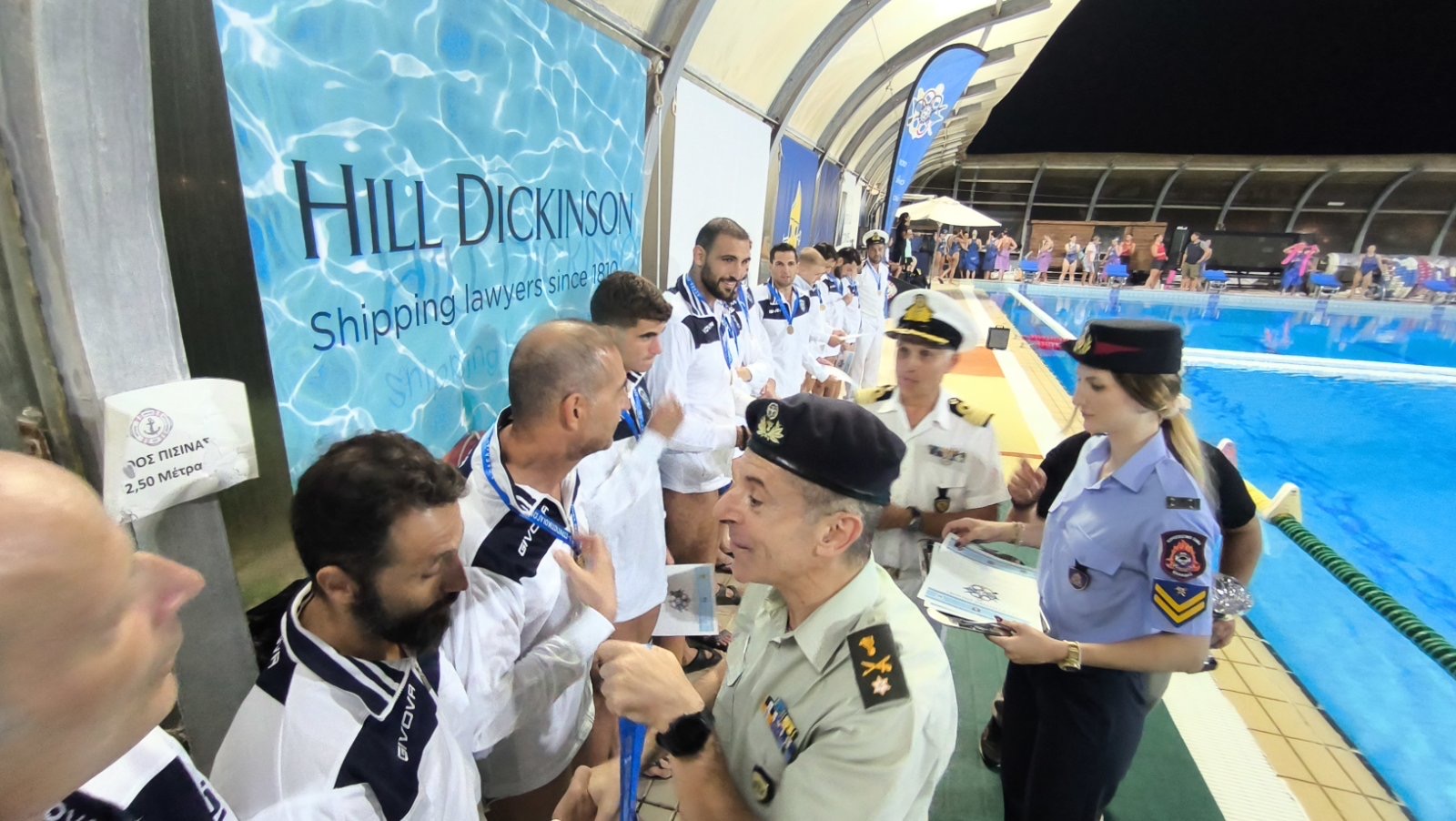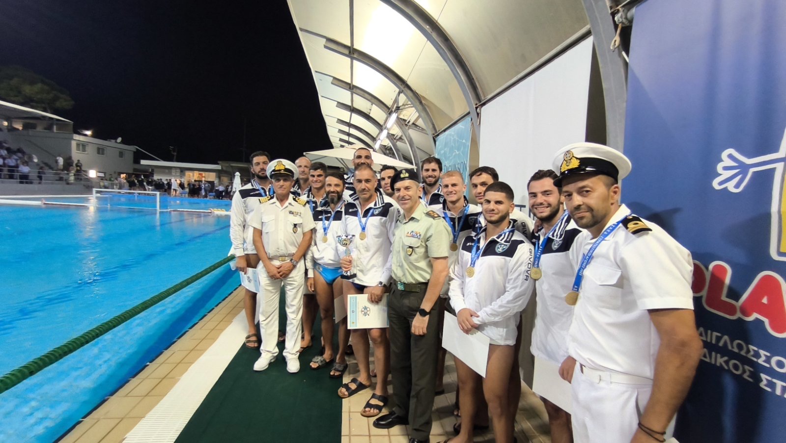 Το Πολεμικό Ναυτικό πανηγύρισε το Πρωτάθλημα Ενόπλων Δυνάμεων και Σωμάτων Ασφαλείας, το οποίο ολοκληρώθηκε σήμερα (12/9) το απόγευμα στο κολυμβητήριο της Βουλιαγμένης, αφού στον τελικό κέρδισε τον Στρατό Ξηράς με 12-9.
