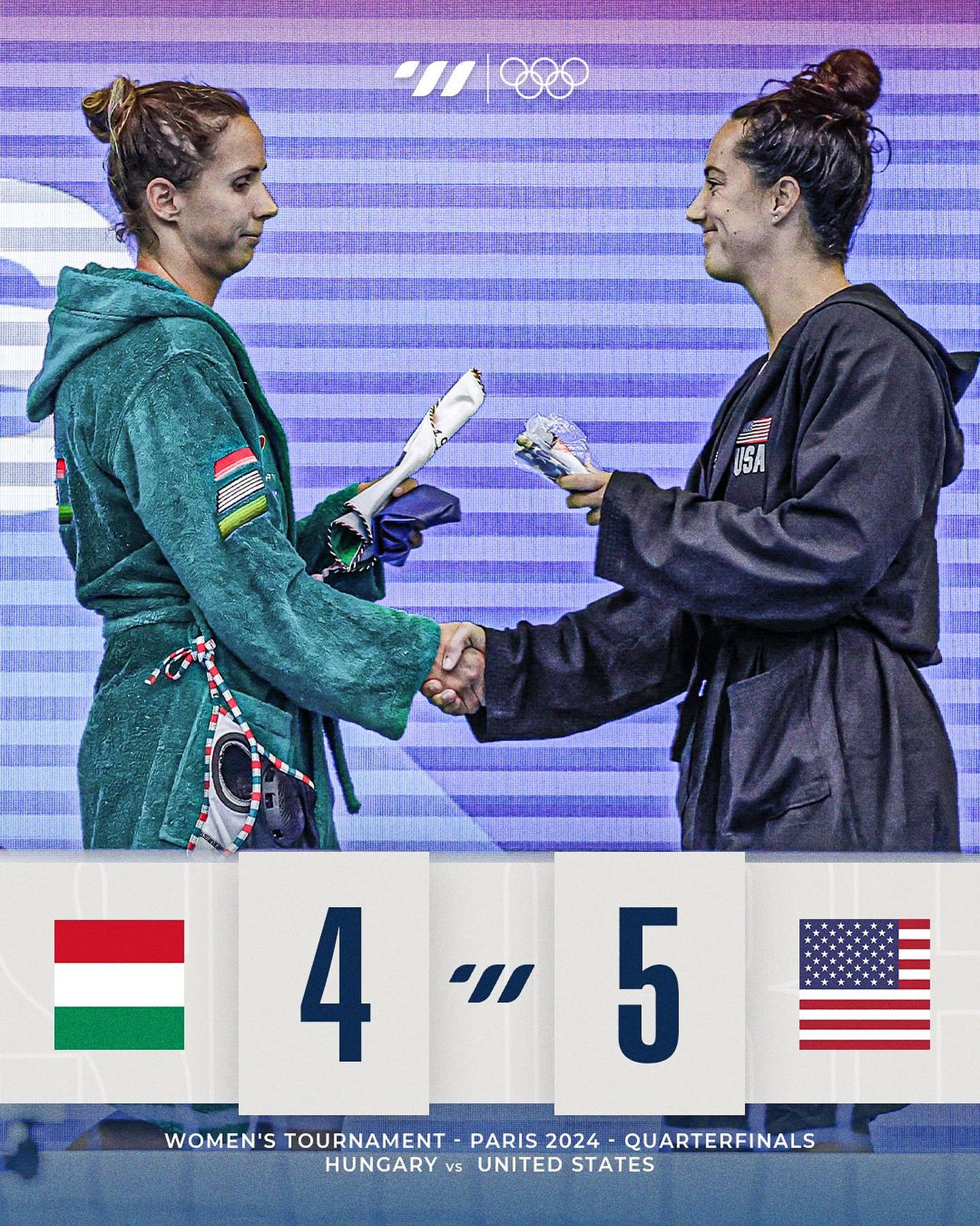 Έτσι, θα συνεχίσουν την προσπάθειά τους για την κατάκτηση του τέταρτου συνεχόμενου χρυσού μεταλλίου σε Ολυμπιακούς Αγώνες. Η Ουγγαρία δυσκόλεψε τις ΗΠΑ, οι οποίες όμως βρήκαν τον τρόπο να πάρουν τη νίκη και να περάσουν στην τετράδα, όπου την Πέμπτη (8/8) θα αντιμετωπίσουν την Αυστραλία.