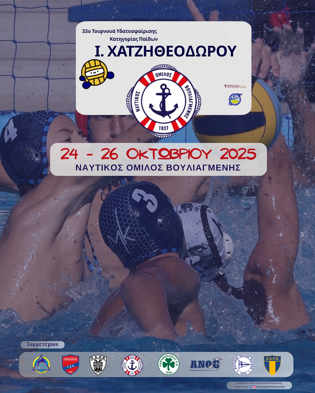 Ανοίγει η αυλαία του τουρνουά Παίδων Κ16 «Ι. Χατζηθεοδώρου» που διοργανώνει για 33η χρονιά ο Ναυτικός Όμιλος Βουλιαγμένης, στη μνήμη του αδικοχαμένου αθλητή του, Ιωάννη Χατζηθεοδώρου.