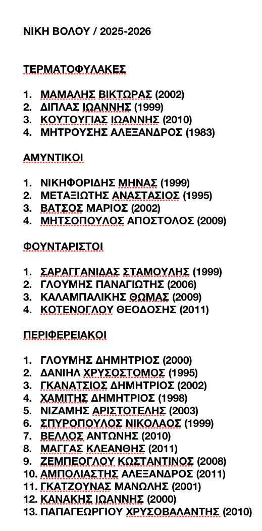 Δείτε παρακάτω το ρόστερ της Νίκης Βόλου