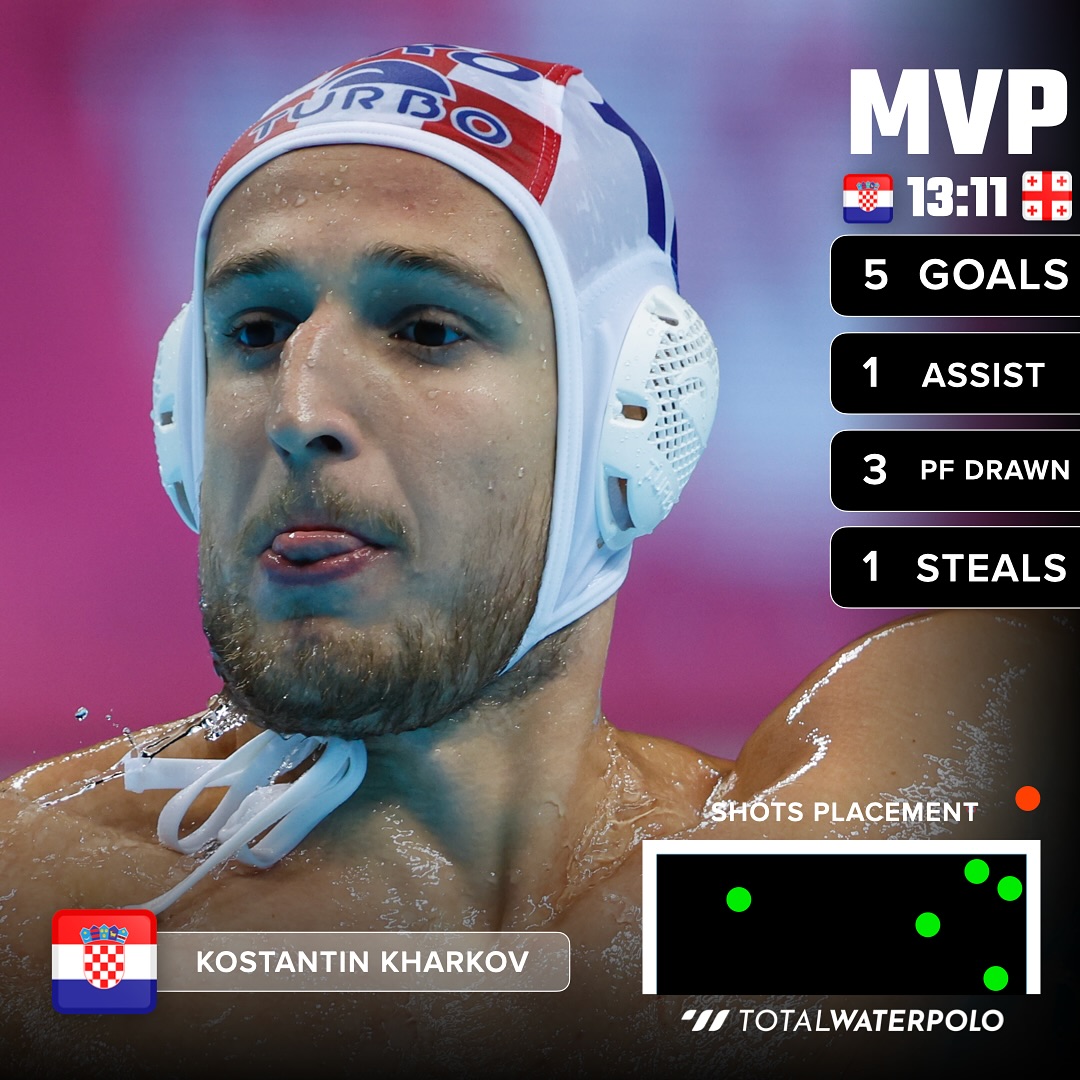 Με πρώτο... βιολί τον Κονσταντίν Χάρκοβ, ο οποίος σταμάτησε στα πέντε γκολ, η Κροατία κατάφερε να λυγίσει την αντίσταση της μαχητικής Γεωργίας με 13-11, στο πλαίσιο του Δ΄ προκριματικού ομίλου για το World Cup, το οποίο φιλοξενείται στο Οτοπένι της Ρουμανίας.