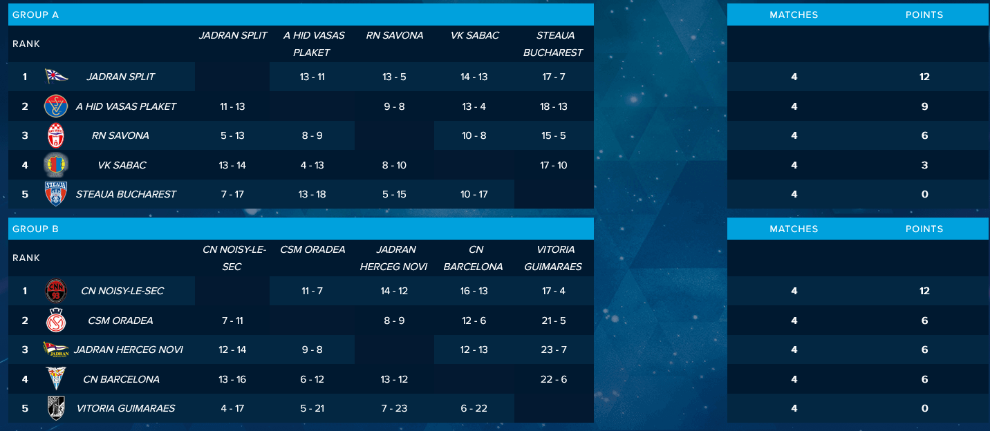 Η Βάσας νίκησε σε ματς-θρίλερ τη Σαβόνα με 9-8 για τον Α' Όμιλο, ενώ σπουδαίο ματς έγινε και στο Σπλιτ για τον ίδιο όμιλο, όπου η Γιαντράν επικράτησε με 14-13 της Σάμπατς.