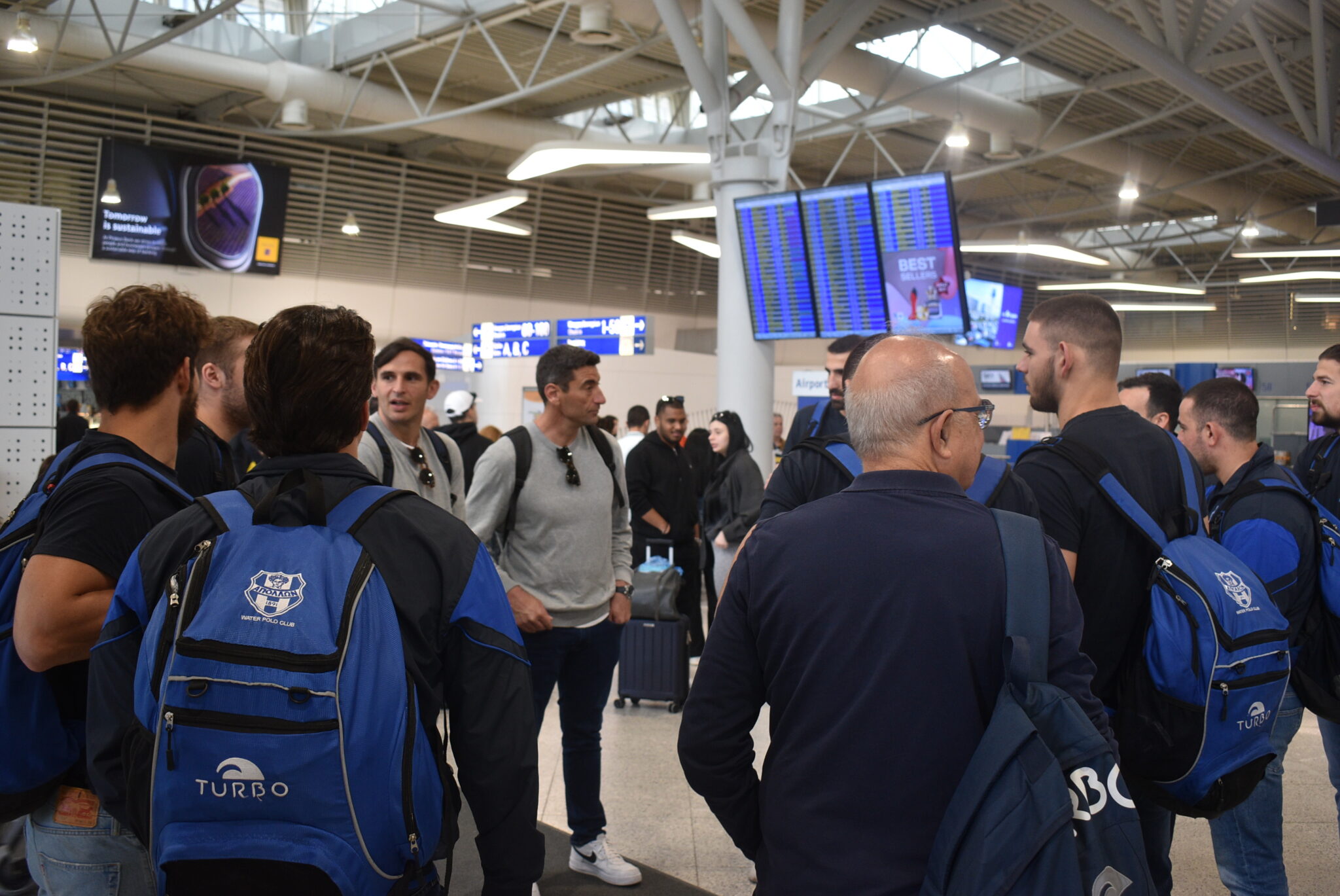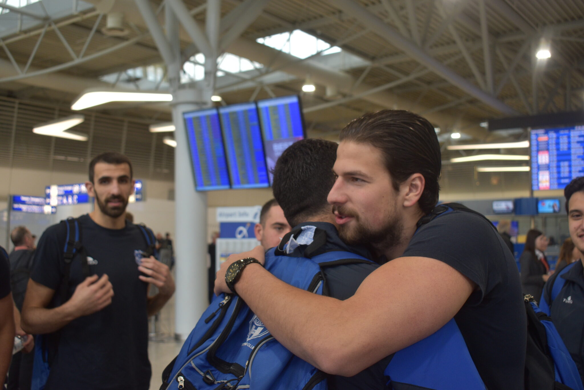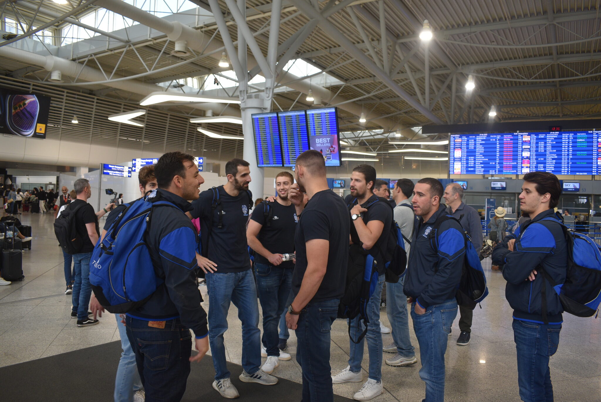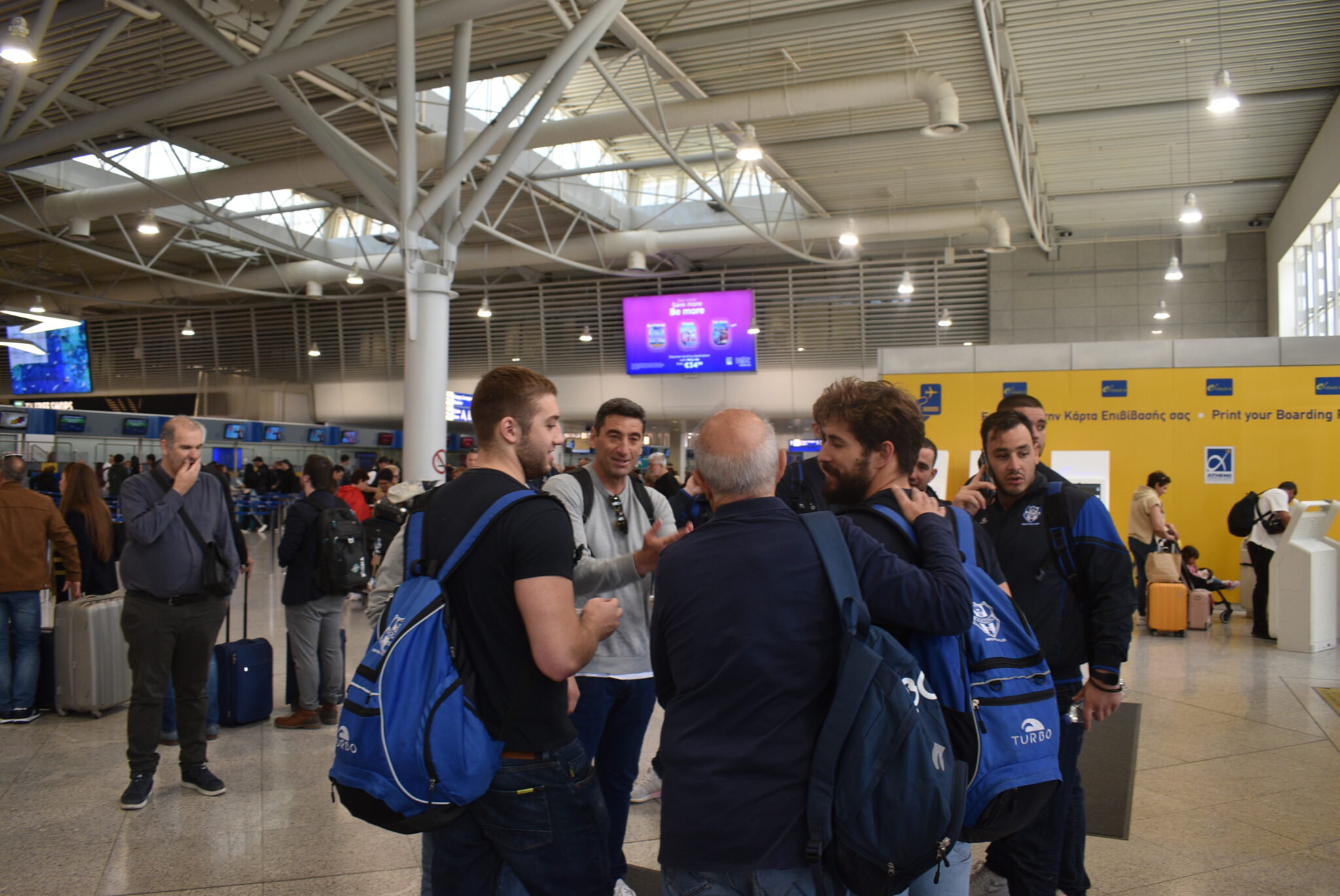 Το κλίμα στην αναχώρηση από το «Ελευθέριος Βενιζέλος» με αρχικό προορισμό τη Βαρκελώνη και ακολούθως την Τεράσα ήταν εξαιρετικό. Ο αρχηγός Μανώλης Σολανάκης, έχοντας σήμερα γενέθλια (29 ετών), δέχτηκε ευχές και αγκαλιές απ’ όλους, με τα χαμόγελα να… δίνουν και να παίρνουν.