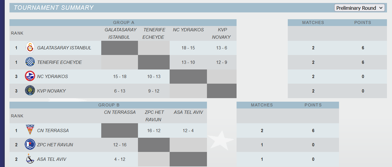 Η Τενερίφη νίκησε με 12-9 τη Νοβάκι, έφτασε τους 6 βαθμούς, όσους έχει και η Γαλατάσαράι και είναι οι δύο ομάδες που εξασφάλισαν το εισιτήριο της πρόκρισης.