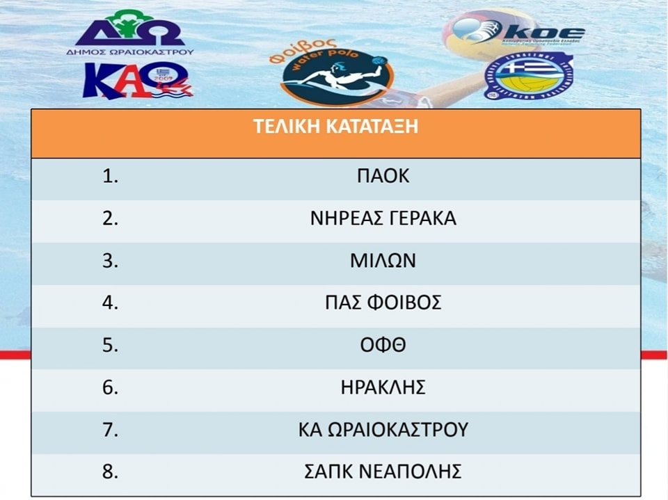 Στο δημοτικό κολυμβητήριο Ωραιοκάστρου «Άγγελος Βλαχόπουλος» πραγματοποιήθηκε από τις 27 ως τις 29 Σεπτεμβρίου 2024 το «6ο Τουρνουά Υδατοσφαίρισης Φοίβος Water Polo Cup».