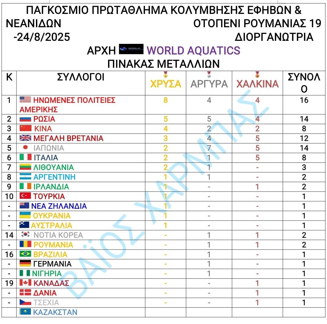 ΠΑΓΚΟΣΜΙΟ ΠΡΩΤΑΘΛΗΜΑ ΚΟΛΥΜΒΗΣΗΣ ΕΦΗΒΩΝ-ΝΕΑΝΙΔΩΝ