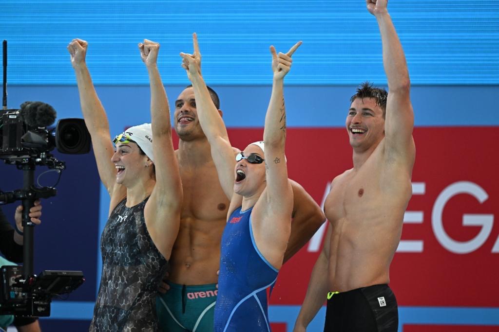 Σπουδαία η εμφάνιση της γαλλικής ομάδας που κέρδισε το χρυσό μετάλλιο στα 4Χ50 ελεύθερο mixed με επίδοση 1.27.53.που αποτελεί νέο παγκόσμιο ρεκόρ, βελτιώνοντας την επίδοση 1.27.80 μου που κατείχε η ομάδα των Ηνωμένων Πολιτειών από τον Δεκέμβρη του 2018.