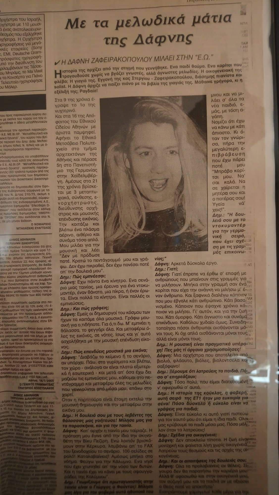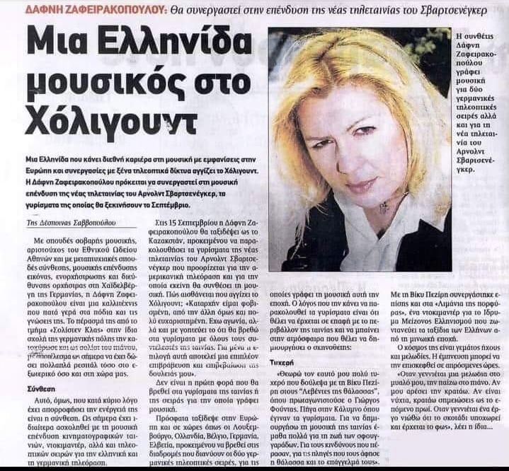 Η Δάφνη που ξεκίνησε την καριέρα της στον Ολυμπιακό και ήταν τερματοφύλακας των ερυθρολεύκων από το 1990, με πρώτο προπονητή τον Γιώργο Κατσούλη, αφιερώθηκε στην μουσική η οποία την κέρδισε ως άνθρωπο και επαγγελματία. Με πολλή προσπάθεια, ατελείωτο διάβασμα και σπουδές, με τρία μεταπτυχιακά και δύο διδακτορικά στα πανεπιστήμια της Νέας Υόρκης και της Καλιφόρνια, η Δάφνη εξειδικεύτηκε στο film academy, στην μουσική επένδυσης εικόνας, σύνθεση, ενορχήστρωση και διεύθυνση ορχήστρας. Δίνει ρεσιτάλ σε όλο τον κόσμο και γράφει μουσική για την Μέκκα του κινηματογράφου. «Με προτιμούν - λέει - εταιρείες κολοσσοί σε όλο τον κόσμο. Εγώ συνεργαστεί με μεγάλα ονόματα όπως είναι ο Μάϊκλ Ντάγκλας, η Ελίζαμπεθ Μαστραντόνιο, έχω γράψει μουσική για ντοκιμαντέρ, σειρές, θέατρο και ταινίες».
