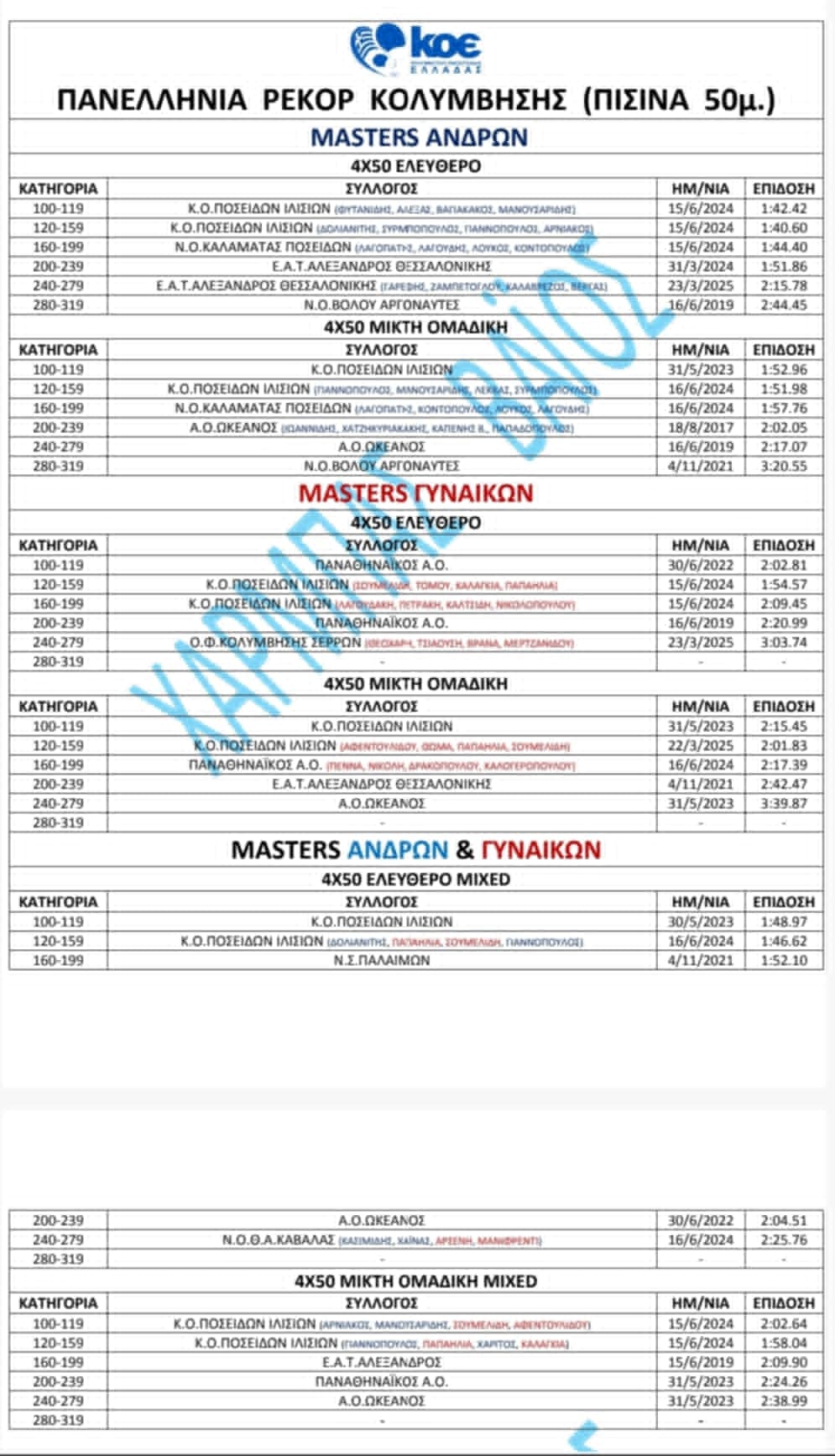 (MASTERS) 2025 έχουν Έλληνες και Αλλοδαποί κολυμβητές-τριες ηλικίας από 25 ετών, περιόδου 2024-25 (γεννημένοι 2000 και μεγαλύτεροι).