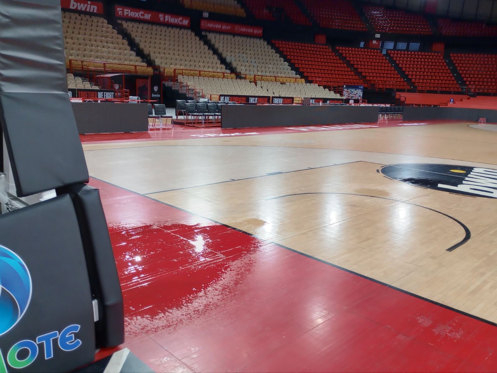 Το παρκέ και το Cube που είναι περιουσία των "ερυθρολεύκων" έχουν τεράστιο πρόβλημα. Επίσης έγιναν μεγάλες ζημιές και στο γυμναστήριο της ομάδας με τα νέα υπερσύγχρονα μηχανήματα.