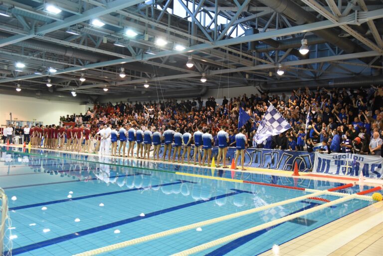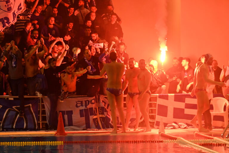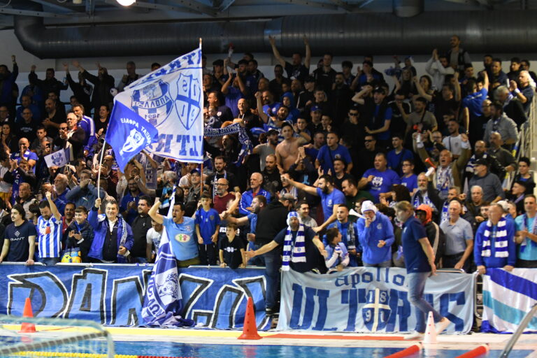 Κατέκλυσαν κάθε γωνιά του Σεράφειου κι έδωσαν τη δική τους σπουδαία παράσταση, παράλληλα με εκείνη των παικτών μέσα στο νερό. Τραγουδούσαν ασταμάτητα από την αρχή μέχρι και το τέλος αποτελώντας τον 8ο παίκτη του Απόλλωνα Σμύρνης, που έφτασε στη σπουδαία νίκη με σκορ 12-11 παίρνοντας μικρό προβάδισμα για την ευρωπαϊκή κούπα εν όψει του 2ου Τελικού στις 29 του Απρίλη στην Τεράσα. Εκεί όπου θα ταξιδέψουν 50 Απολλωνιστές οπαδοί για να δώσουν, όπως και χθες, τον δικό τους «μαγικό» τόνο στην εξέδρα και να σπρώξουν τους «κυανόλευκους» προς το τρόπαιο!
