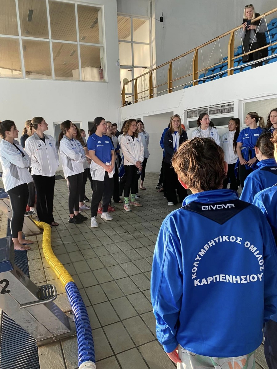 Ένα από αυτά αποτέλεσε η συνάντηση με τους αθλητές/τριες της αγωνιστικής και προαγωνιστικής ομάδας του Κολυμβητικού Ομίλου Καρπενησίου. Σε μια ωραία συζήτηση τα παιδιά του τοπικού ομίλου είχαν την ευκαιρία να γνωρίσουν τις διεθνείς πολίστριες μαθαίνοντας πολλά πράγματα ενώ ιδιαίτερο ενδιαφέρον είχαν οι απορίες που εξέφρασαν οι μικροί αθλητές προς τις διεθνείς. Στο τέλος, ευχήθηκαν κάθε επιτυχία στις επικείμενες διοργανώσεις που πρόκειται να συμμετάσχουν.