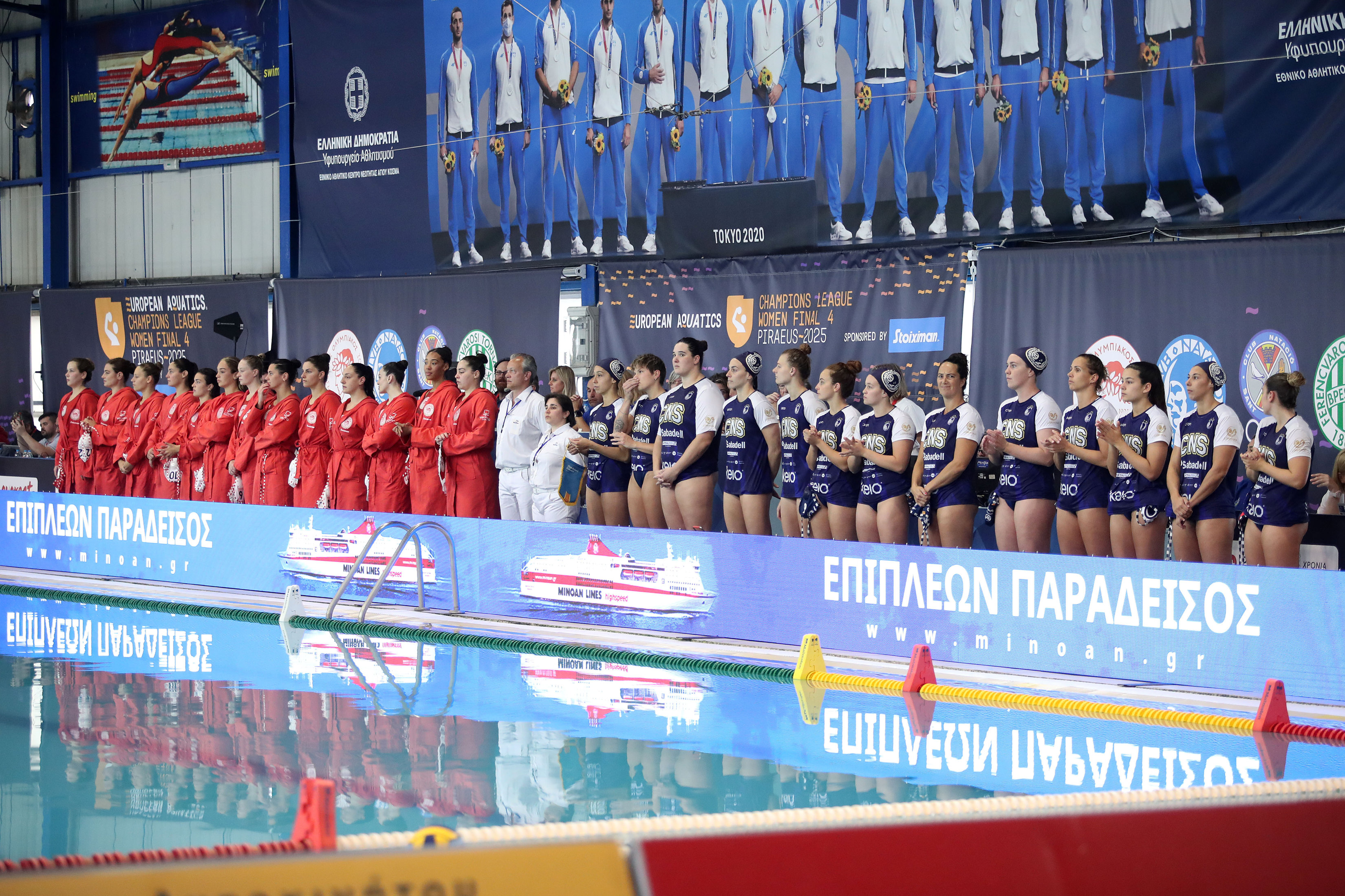 Ολυμπιακός εναντίον Φερεντσβάρος για το χάλκινο μετάλλιο στο Champions League Υδατοσφαίρισης Γυναικών, το οποίο ολοκληρώνεται σήμερα το απόγευμα στο κολυμβητήριο του Πειραιά.