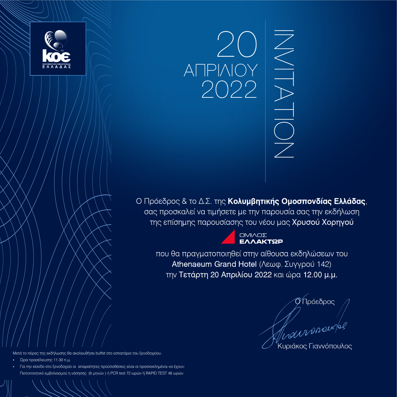 Παρουσίαση χρυσού χορηγού από την ΚΟΕ