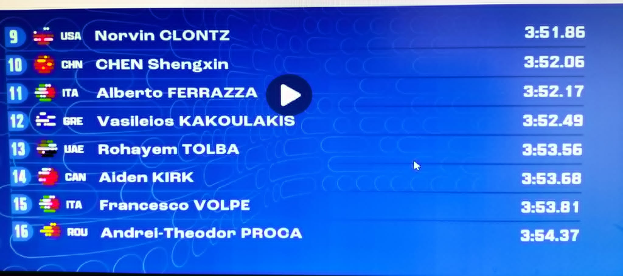Ευχαριστούμε τους κ.κ. Γιώργο Σπαθαράκη & Tasos Kallitsaris για την αποστολή των φωτογραφιών γιατί στην WORLD AQUATICS δεν υπάρχει ροή αποτελεσμάτων.