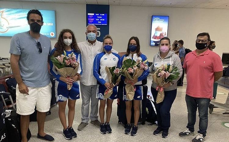 Επέστρεψαν χθες από το Τόκιο τα 3 από τα 4 κορίτσια της καλλιτεχνικής κολύμβησης που είχαν βρεθεί θετικά σε τεστ κορωνοϊού. Τα συνόδευε η Κατερίνα Σαγώνα από την ΕΟΕ και τα υποδέχθηκαν ο Πρόεδρος της ΚΟΕ Κυριάκος Γιαννόπουλος και ο Γιώργος Χριστοφορατος με τον Γιώργο Αφρουδάκη. Καλώς ήρθατε κορίτσια.