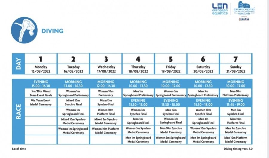 Δείτε, πάνω, δίπλα στη φωτό, αλλά και ΕΔΩ το αναλυτικό πρόγραμμα των καταδύσεων στο Ευρωπαϊκό πρωτάθλημα.