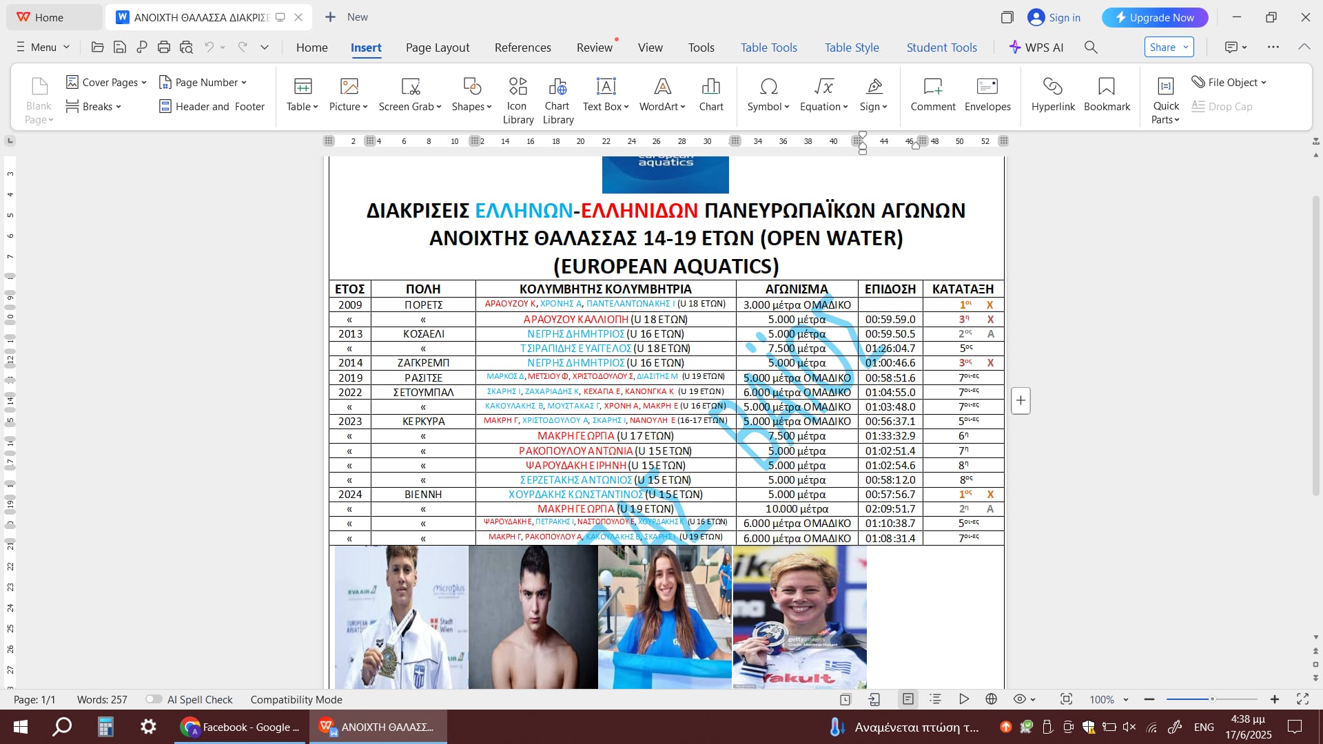 ΕΥΡΩΠΑΪΚΟ ΠΡΩΤΑΘΛΗΜΑ ΑΝΟΙΧΤΗΣ ΘΑΛΑΣΣΑΣ (OPEN WATER) JUNIOR