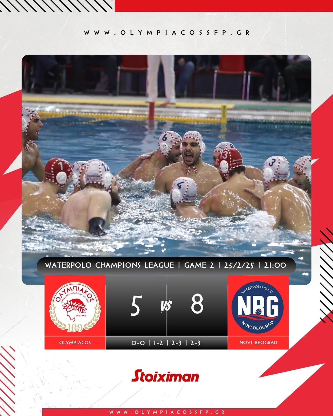 Η άμυνα της Νόβι και ο τερματοφύλακας της, Μίλαν Γκλουσατς, αποδείχθηκαν ανυπέρβλητο εμπόδιο για τον Ολυμπιακό, ο οποίος ηττήθηκε με 8-5, στο πλαίσιο της 2ης αγωνιστικής του Α΄ομίλου στο Champions League Υδατοσφαίρισης Ανδρών.