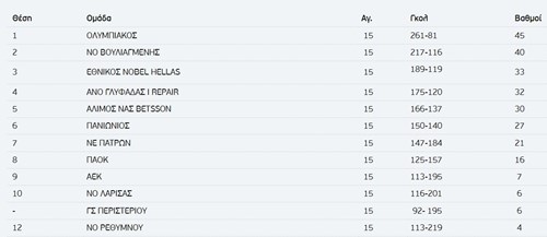Ολοκληρώθηκε η 15η αγωνιστική της Α1 Γυναικών, με τα φαβορί να παίρνουν νίκες και την κατάσταση στη βαθμολογία να μένει ίδια.